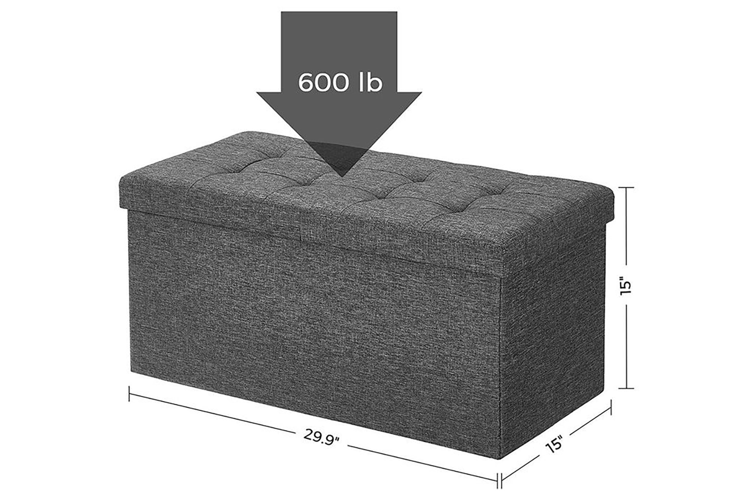 When it comes to hiding the mess, storage space is all we want. This 29.9"L x 15"W x 15"H storage bench boasts a large capacity of 21.1 gal for blankets, clothes, toys, books, and many other sundries