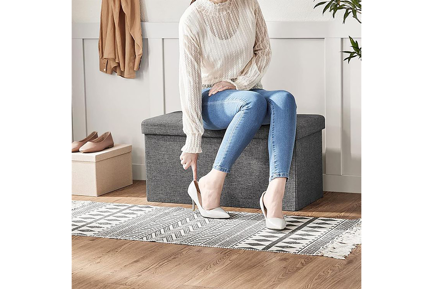 From a comfortable ottoman in the living room to a shoe bench in the hallway or a bed end stool in the bedroom to a storage box for toys—this storage bench is a true all-rounder!