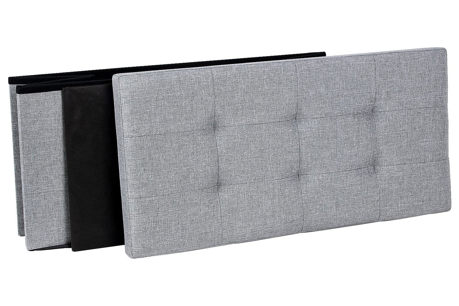 Position it opposite your sofa or place the comfortable upholstered furniture at the foot of your bed and stow bed linen or pyjamas in it. The stylish box is easy to open, close and fold. The premium fibreboard frame provides a stable hold (static load capacity: 660 lb) so that two people can sit down on the bench at the same time.