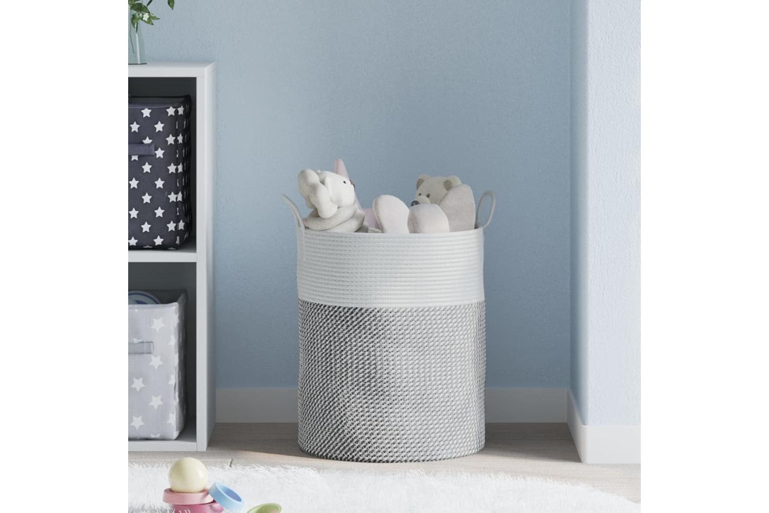 Storage Basket Grey And White 38x46 Cm Cotton