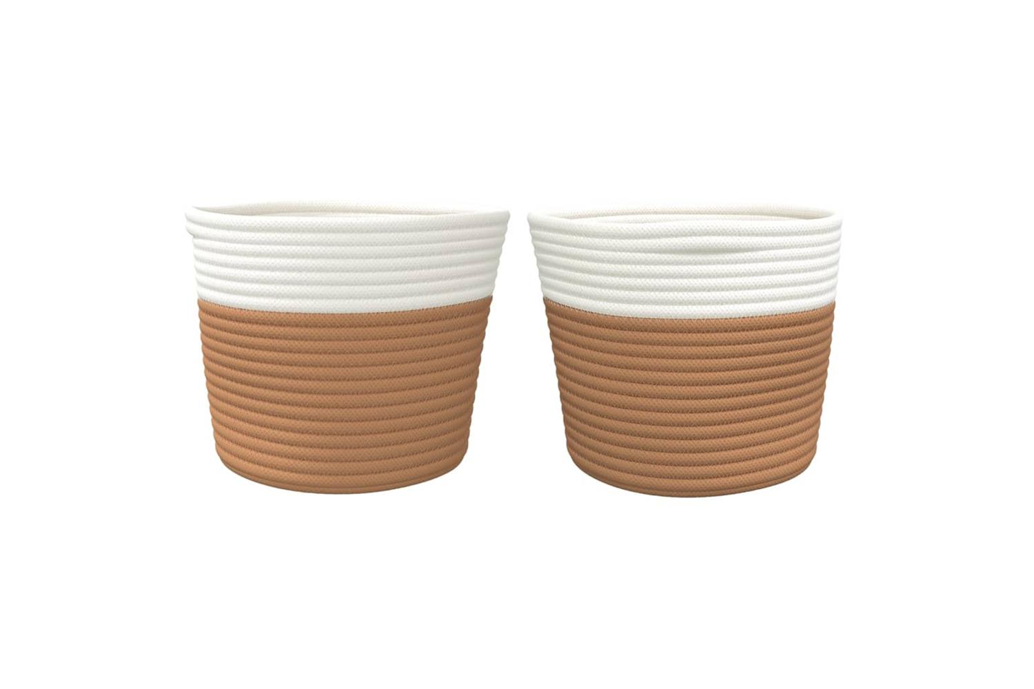 Storage Baskets 2 Pcs Brown And White 24x18 Cm Cotton