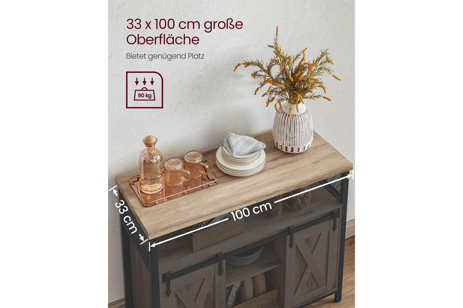 VASAGLE Storage Cabinet | Chipboard And Steel | 33 x 100 x 80 Cm