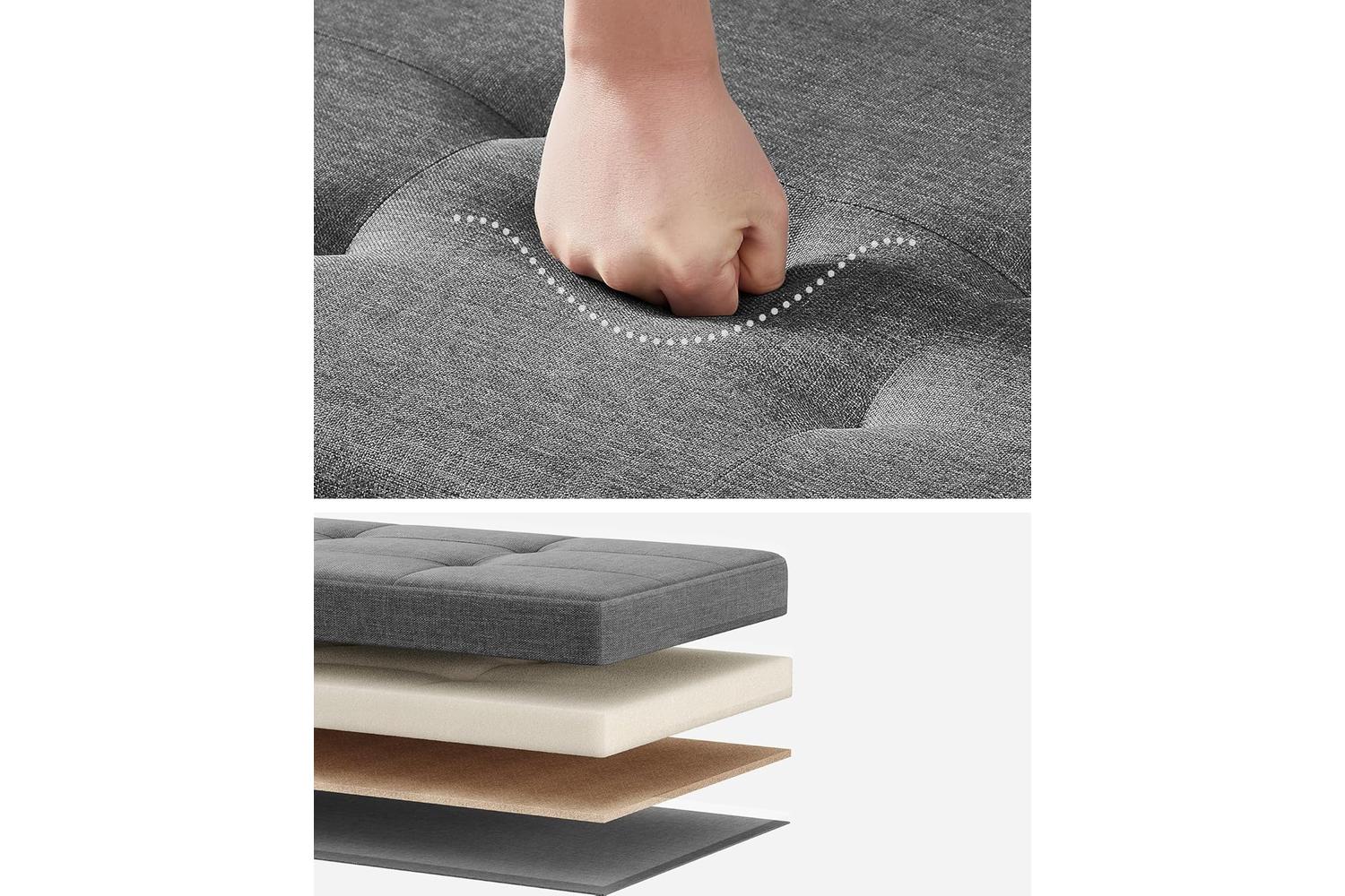 Crafted with a sturdy MDF board frame and finished in a soft, linen-like fabric, the SONGMICS Storage Ottoman brings a touch of elegance to any room. The generous foam padding ensures a comfortable seat, making it perfect for guests or for putting your feet up after a long day. With its impressive 112-litre capacity, you can easily store blankets, shoes, toys, or seasonal clothing, keeping your home organised and clutter-free.