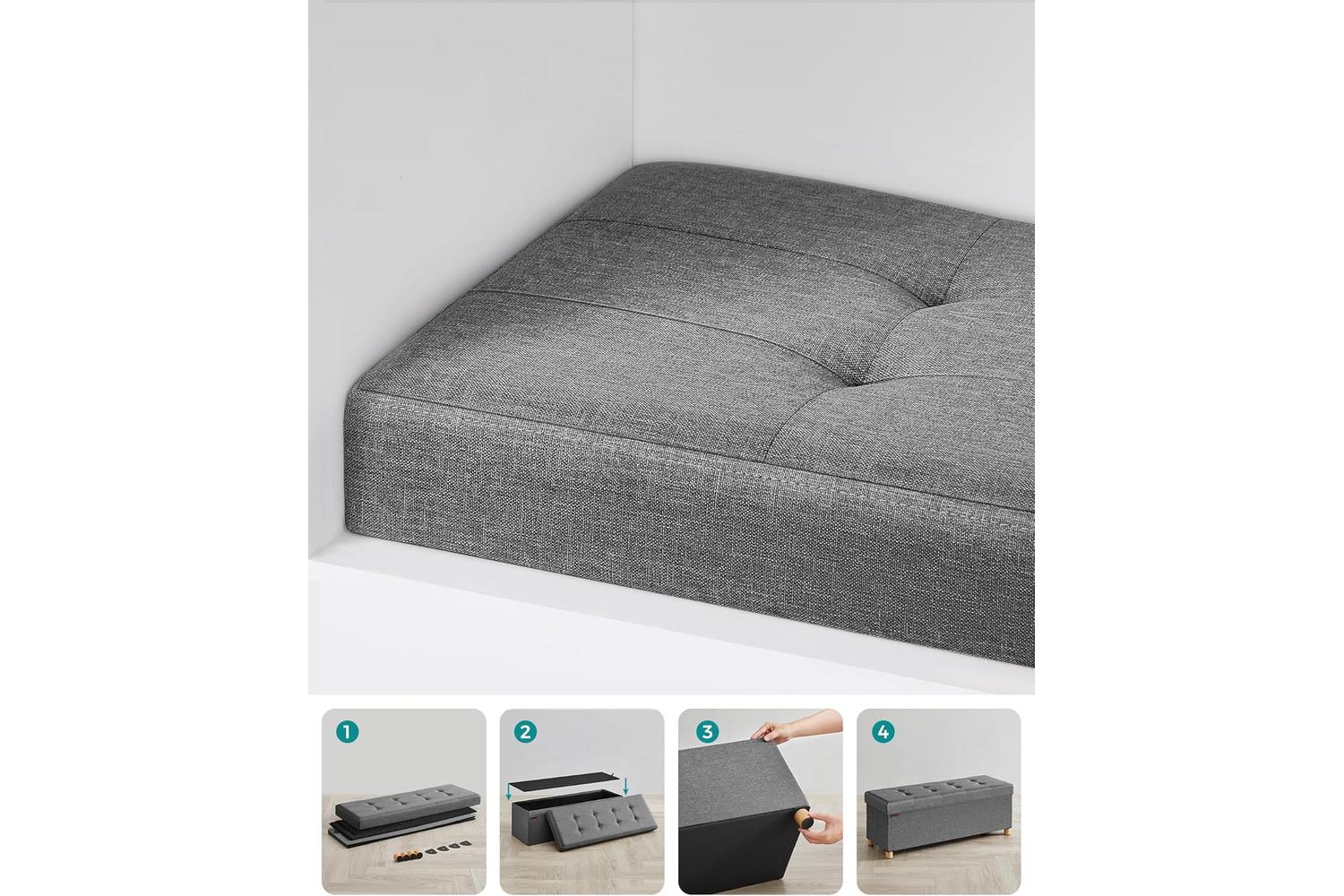 Transform your living space with the SONGMICS Storage Ottoman, a stylish and practical solution for modern Irish homes. Designed to blend seamlessly with any décor, this dark grey storage bench offers a perfect balance of comfort, durability, and ample storage. Whether you are looking to declutter your hallway, add extra seating to your bedroom, or create a tidy playroom, this versatile ottoman is the ideal choice for those who value both form and function.
