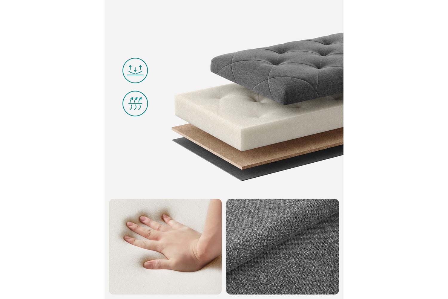 Crafted from durable MDF (Medium-Density Fiberboard) and upholstered in a premium linen-look fabric, the SONGMICS Storage Ottoman is built to last. The high-resilient 25D foam padding ensures a comfortable seat, while the sturdy construction supports a maximum static load of up to 300 kg. With a generous 70-litre capacity, you can easily store blankets, cushions, toys, shoes, or seasonal clothing, keeping your home tidy and organised without sacrificing style.