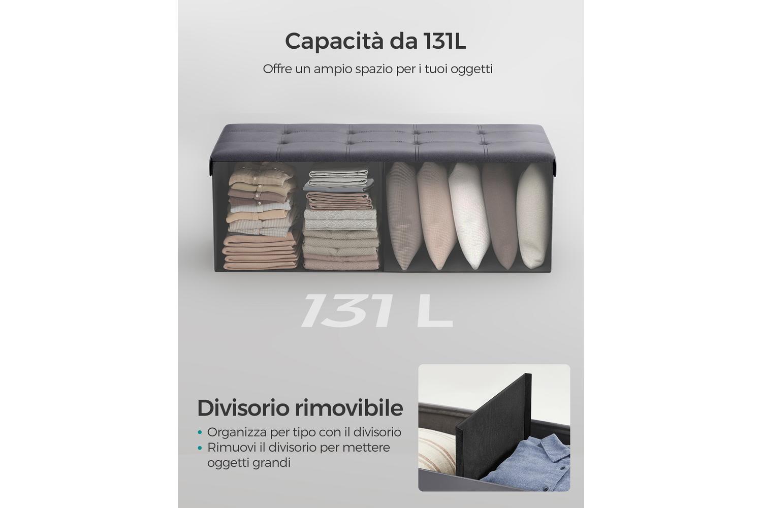 - 35-gallon (131L) storage capacity with removable divider