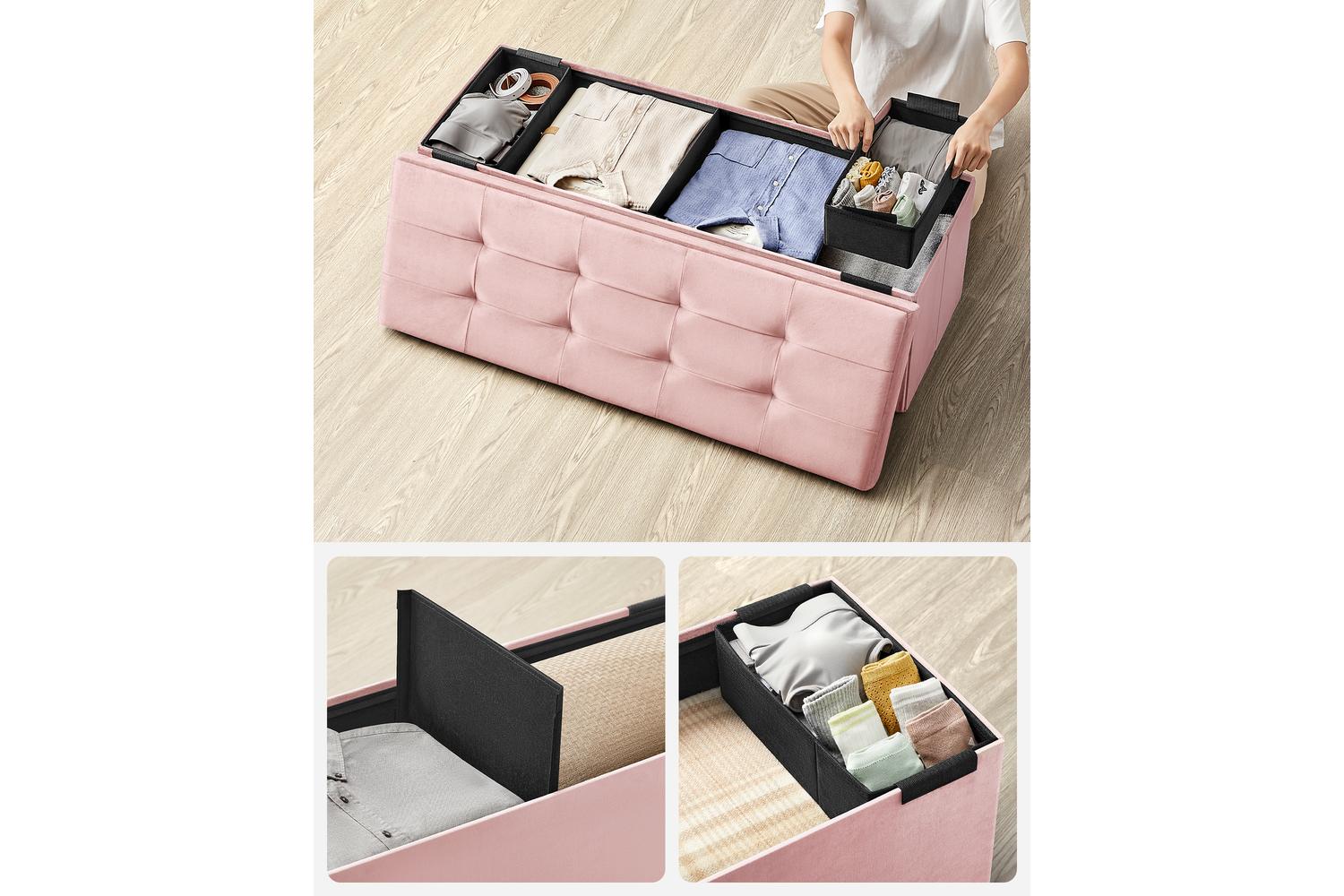 Maximise your storage with a generous 131-litre capacity, perfect for stowing away books, blankets, toys, or seasonal clothing. The ottoman includes two handy storage bins for smaller items and a removable divider, allowing you to organise your belongings with ease. Its clever folding design means you can assemble or store it away in seconds, making it a smart choice for homes where space is at a premium.