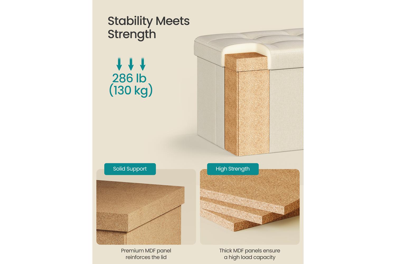 - Sturdy MDF construction supports up to 130 kg
