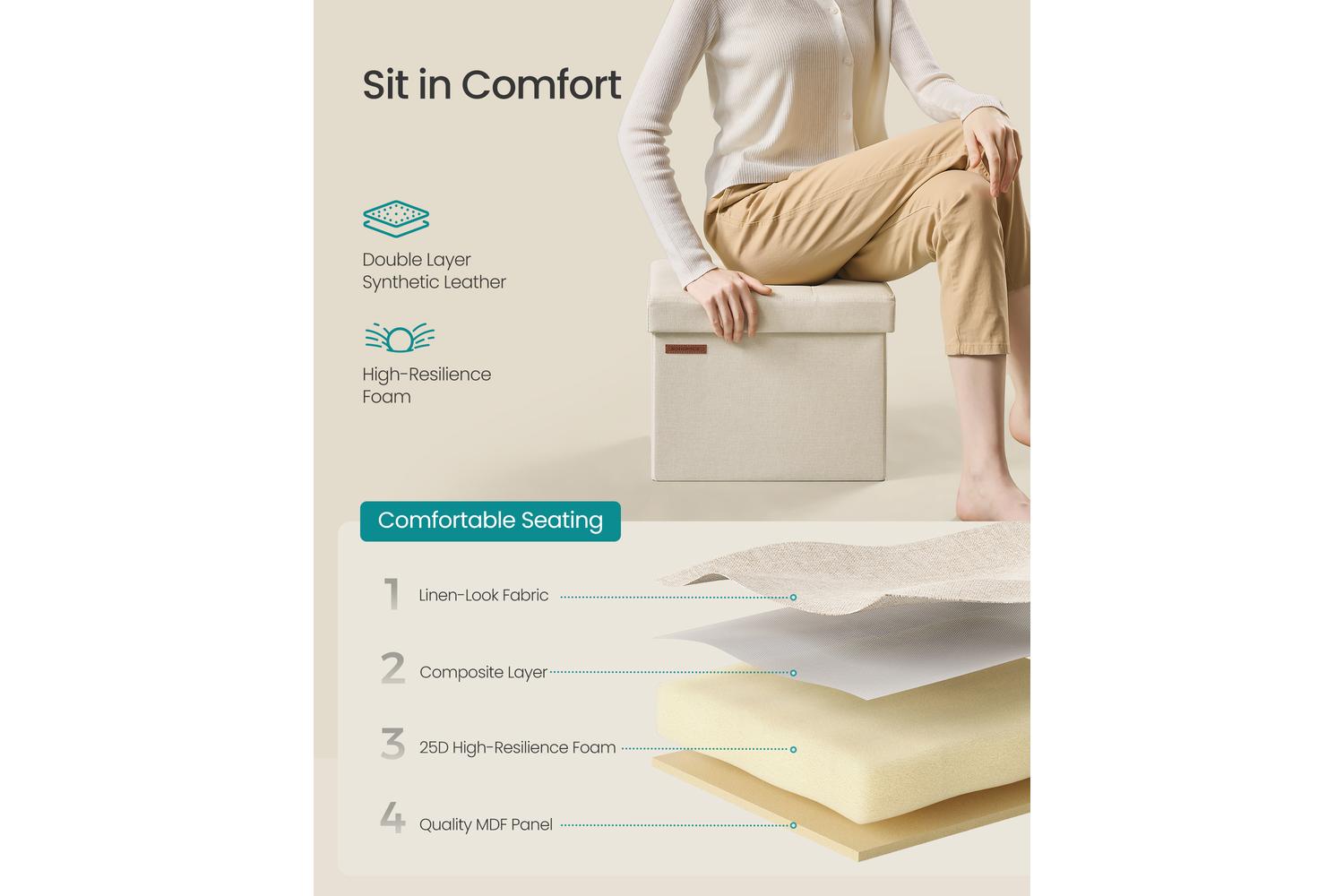 Transform Your Space With The SONGMICS Storage Ottoman | Storage Box | Faux Linen | 31 x 41 x 31 cm