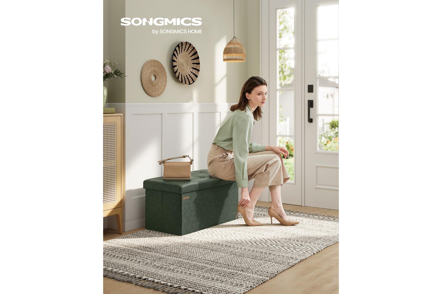 Transform Your Space With The SONGMICS Storage Ottoman – Stylish Storage Bench In Forest Green