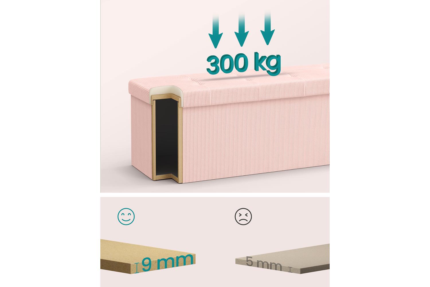 Built to last, the SONGMICS Storage Ottoman features solid MDF boards and reinforced metal corner protectors on the lid, supporting up to 300 kg. This makes it not only a reliable storage solution but also a sturdy seat for guests or a handy coffee table in your living area. The double-layer corduroy fabric and high-resilience foam provide exceptional comfort, inviting you to relax and unwind after a long day.