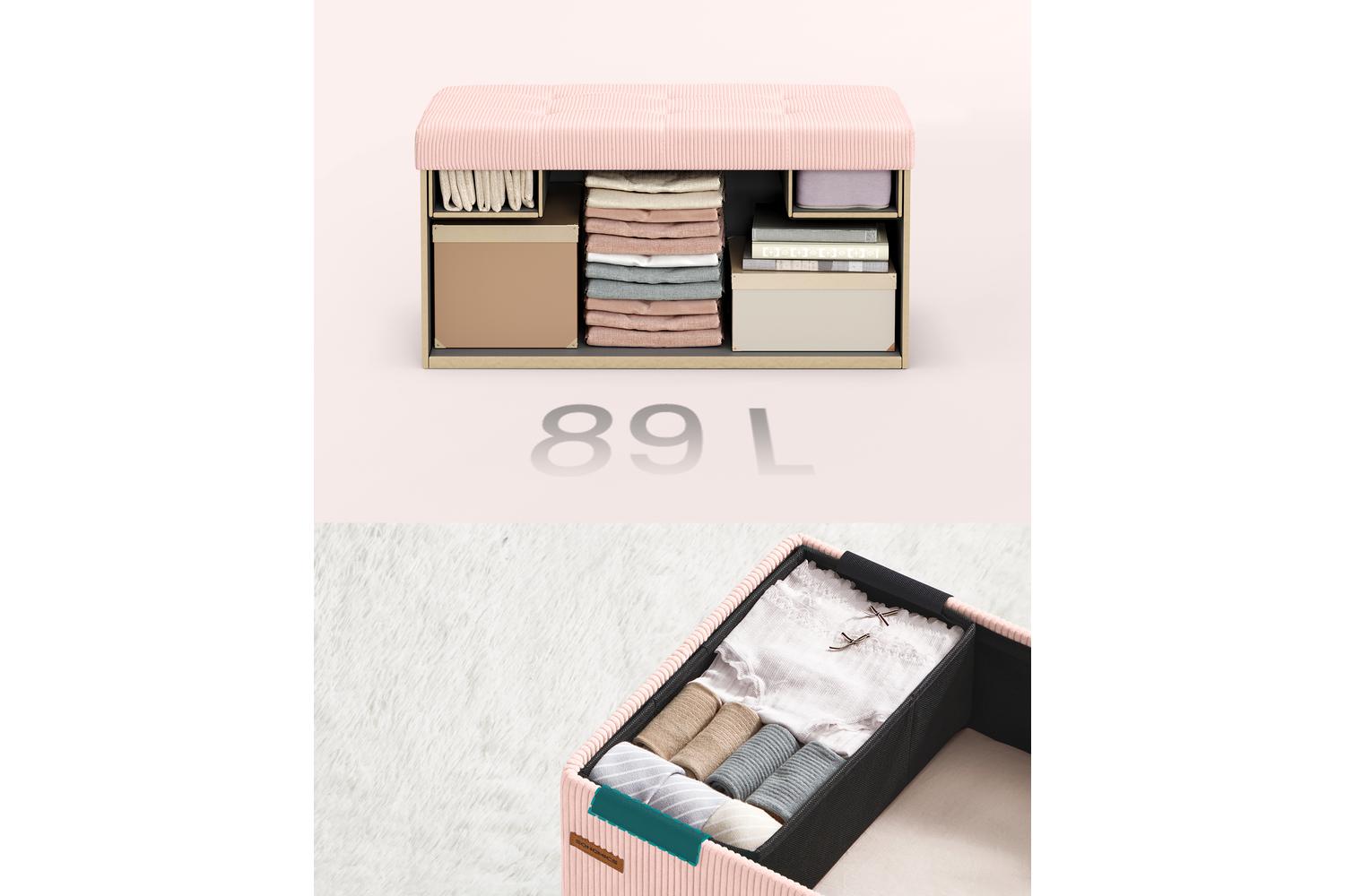 Setting up this folding storage bench is a breeze—simply insert the bottom panel and you are ready to go in seconds. When not in use, it folds flat for easy storage under a bed or in a wardrobe, making it perfect for those who value both style and practicality. With a generous 89-litre capacity, you can neatly store books, blankets, toys, or seasonal clothing, keeping your space tidy and clutter-free. The included two storage boxes are ideal for organising smaller items like socks, underwear, or accessories, ensuring everything has its place.