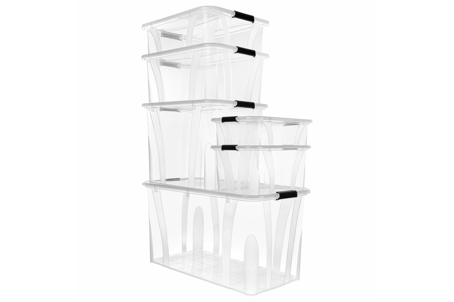 These storage bins are made of 100% PP (Polypropylene), making them sturdy, durable and easy to clean. The transparent bases allow you to see the contents of the box at a glance. Thanks to the stackable design, the storage containers are nestable when not in use to save storage spaces. The firm latches on both sides can be tightly attached to the groove on the lid, protecting the contents of the box from getting dirty or wet. Additionally, the boxes are food safe, so they are also suitable to store condiments, spices, snacks, drinks, and other food.