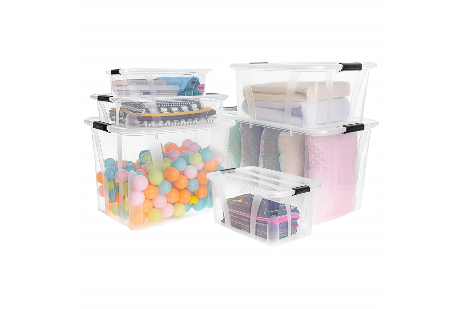 These storage bins are made of 100% PP (Polypropylene), making them sturdy, durable and easy to clean. The transparent bases allow you to see the contents of the box at a glance. Thanks to the stackable design, the storage containers are nestable when not in use to save storage spaces. The firm latches on both sides can be tightly attached to the groove on the lid, protecting the contents of the box from getting dirty or wet. Additionally, the boxes are food safe, so they are also suitable to store condiments, spices, snacks, drinks, and other food.