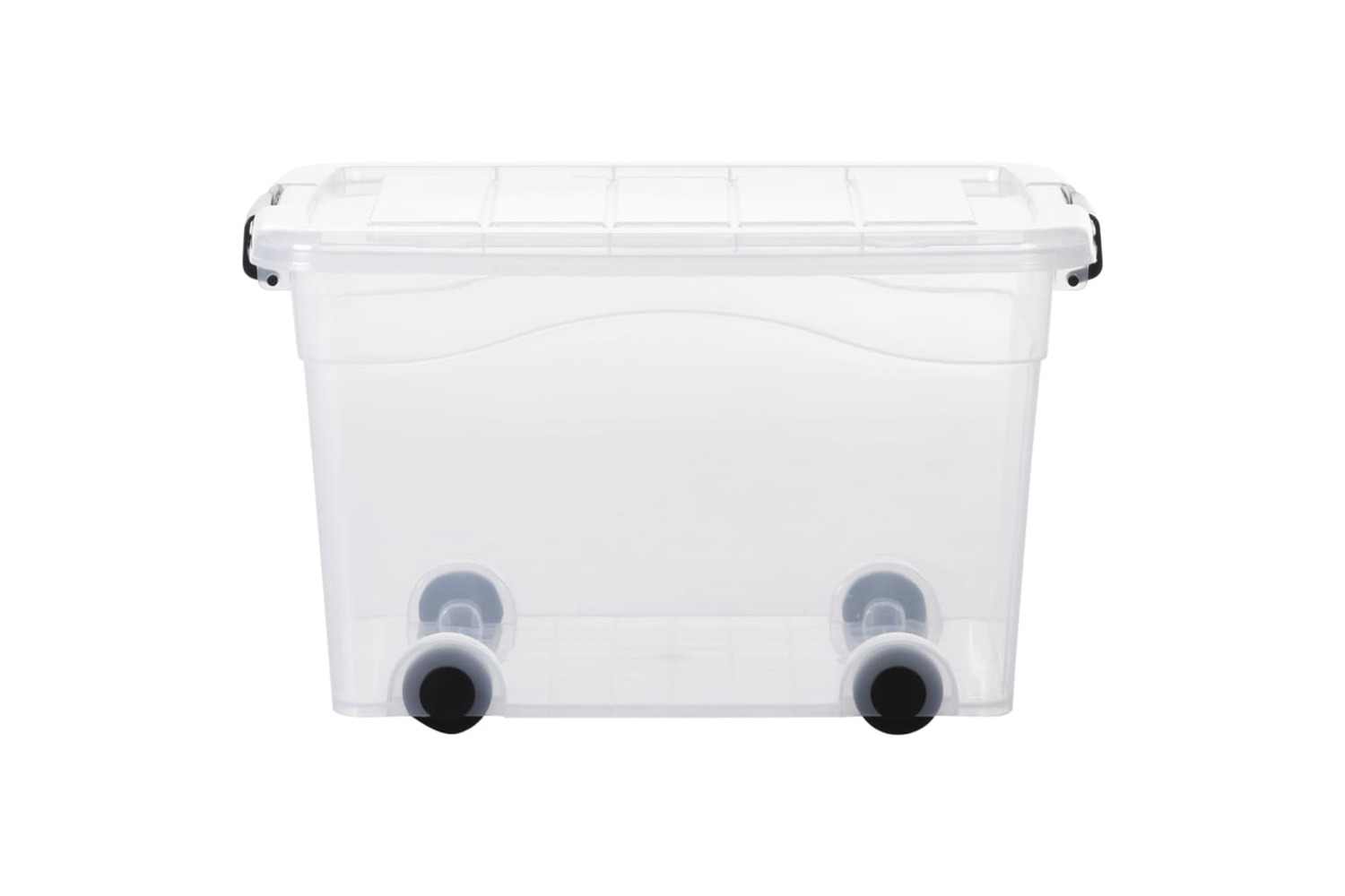 These storage bins are made of 100% PP (Polypropylene), making them sturdy, durable and easy to clean. The transparent bases allow you to see the contents of the box at a glance. Thanks to the stackable design, the storage containers are nestable when not in use to save storage spaces. The firm latches on both sides can be tightly attached to the groove on the lid, protecting the contents of the box from getting dirty or wet. The four wheels on the bottom make it easy to move the container, even when stacked, on surfaces. Additionally, the boxes are food safe, so they are also suitable to store condiments, spices, snacks, drinks, and other food.