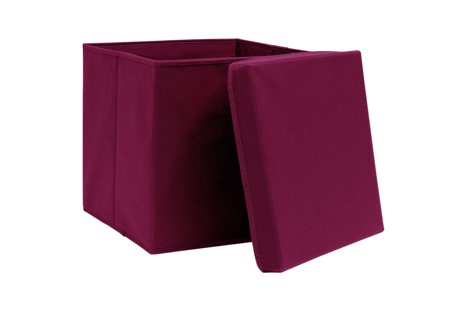 The practical storage boxes are made of Non-woven fabric which makes them quite durable. There is a cover on each box to keep the items stored clean. Each storage box also features a convenient metal eyelet that can be used to pull them out from your wardrobe, shelf, cabinet, etc. While not in use, the storage boxes can be folded to save room.