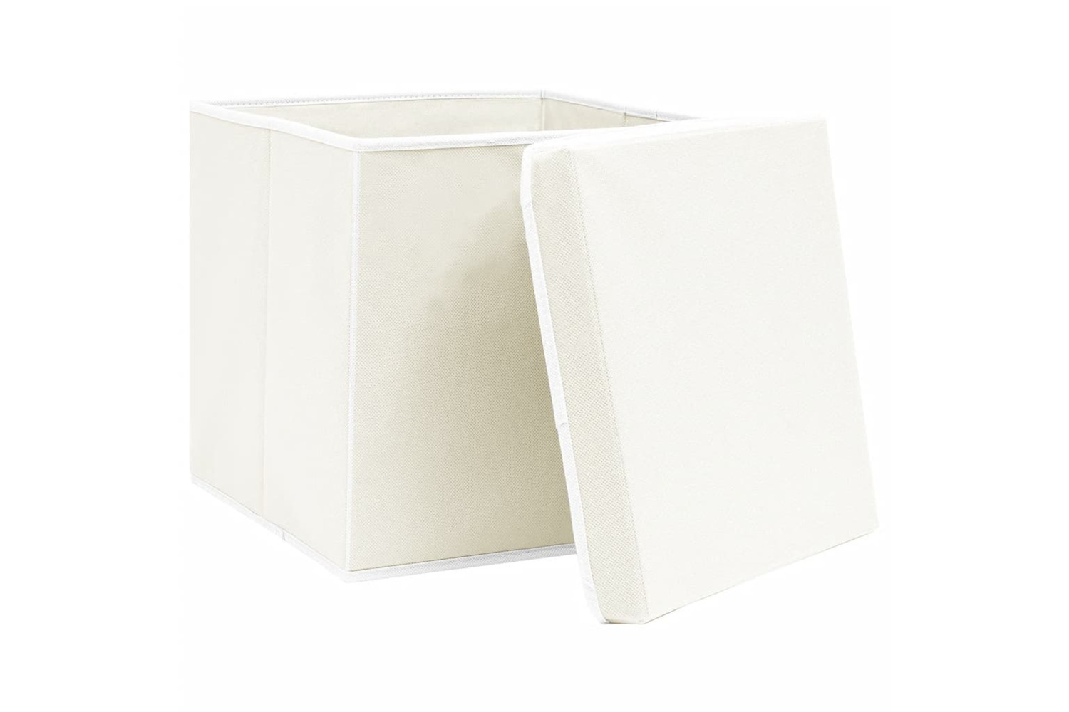 The practical storage boxes are made of Non-woven fabric which makes them quite durable. There is a cover on each box to keep the items stored clean. Each storage box also features a convenient metal eyelet that can be used to pull them out from your wardrobe, shelf, cabinet, etc. While not in use, the storage boxes can be folded to save room.