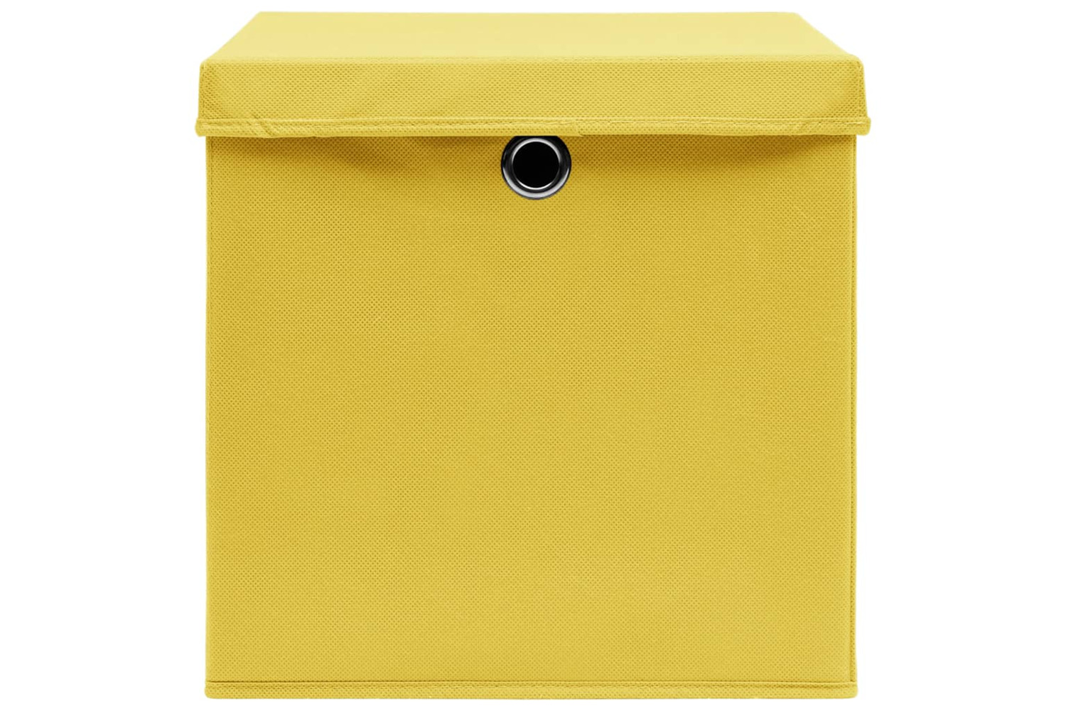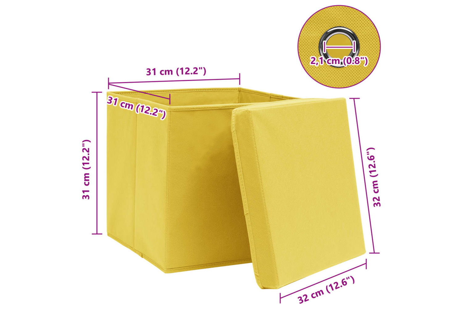 The practical storage boxes are made of Non-woven fabric which makes them quite durable. There is a cover on each box to keep the items stored clean. Each storage box also features a convenient metal eyelet that can be used to pull them out from your wardrobe, shelf, cabinet, etc. While not in use, the storage boxes can be folded to save room.