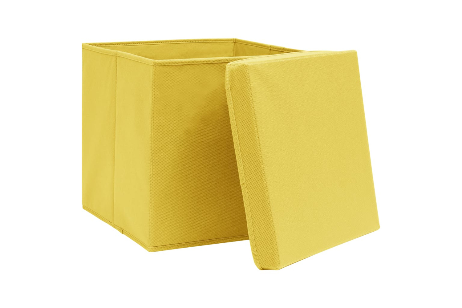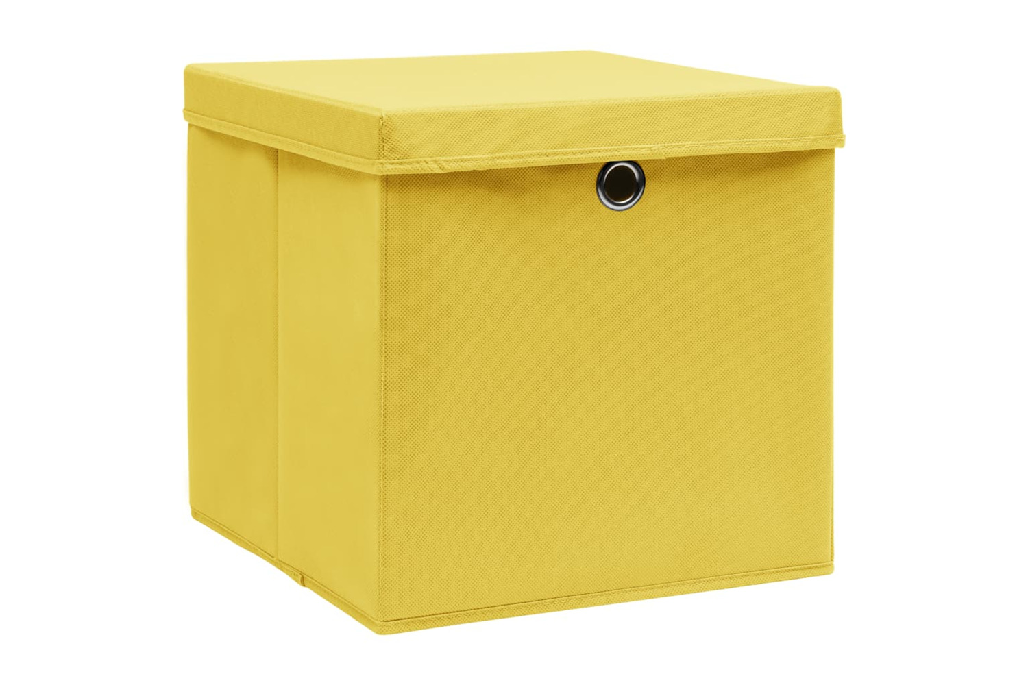 The practical storage boxes are made of Non-woven fabric which makes them quite durable. There is a cover on each box to keep the items stored clean. Each storage box also features a convenient metal eyelet that can be used to pull them out from your wardrobe, shelf, cabinet, etc. While not in use, the storage boxes can be folded to save room.