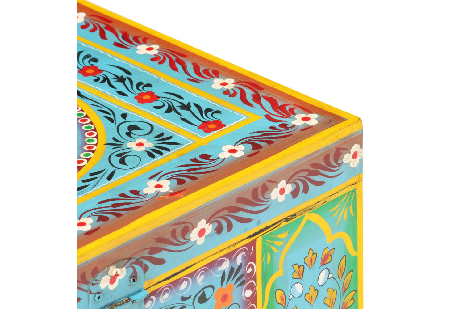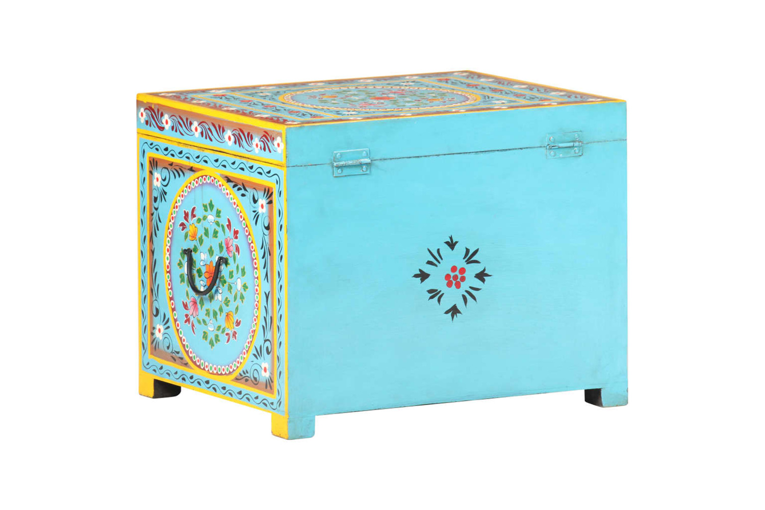 This colourful box is hand-painted with decorative details, making it practical for storage, and also beautiful for displaying in your room. With the large storage room inside the wooden box, you can easily keep clothes, pillows, blankets, and other items well organised and within reach. The storage box is made of solid mango wood, a tropical hardwood. It has the strength to bear the weight and also stand the wear and tear of time. Additionally, the exquisite craftsmanship makes every piece slightly different from the next.