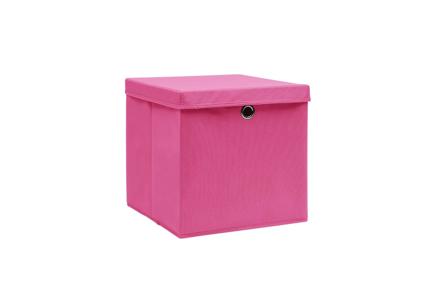 These stylish folding storage boxes with covers can fit perfectly on almost every shelf.