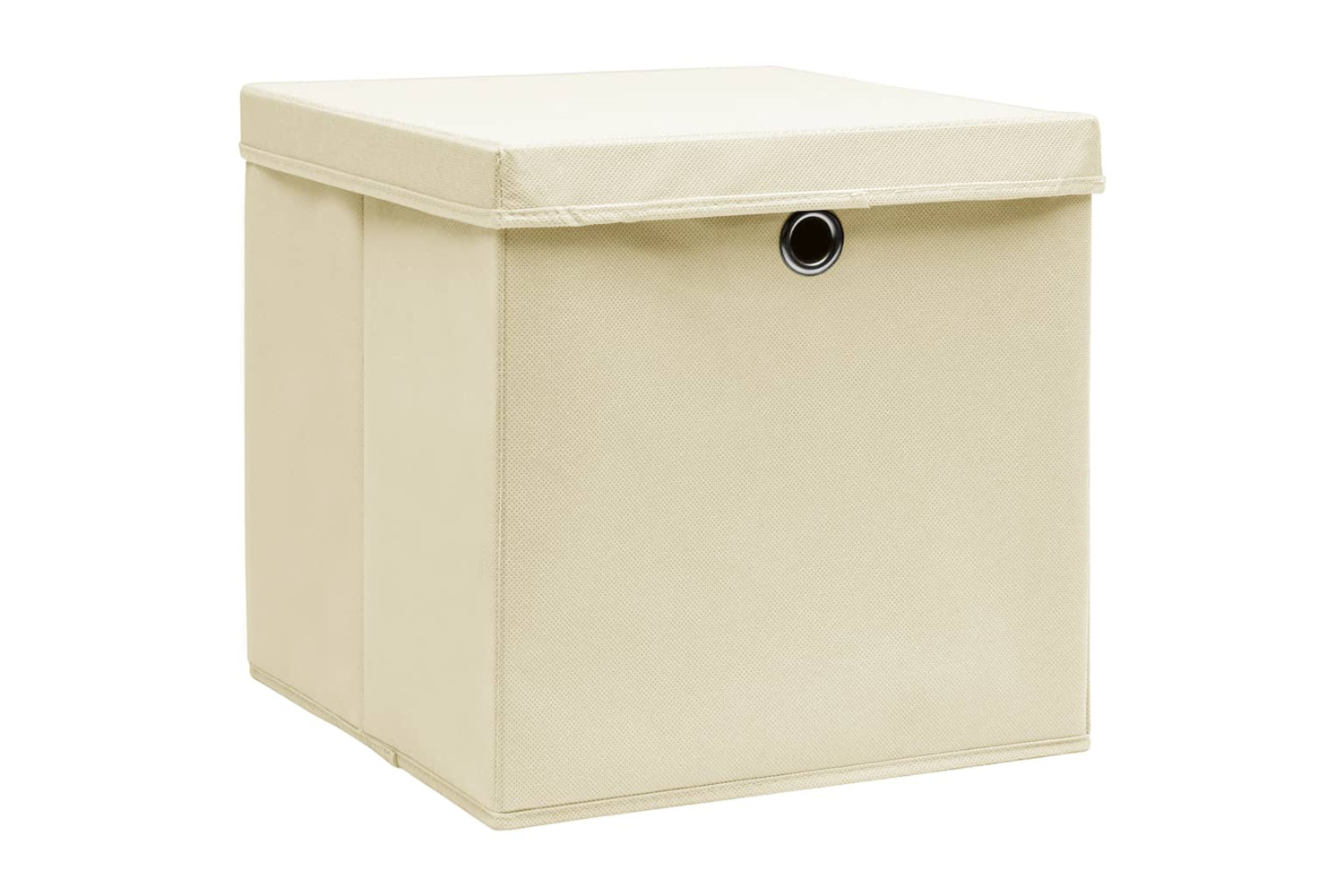 These stylish folding storage boxes with covers can fit perfectly on almost every shelf.