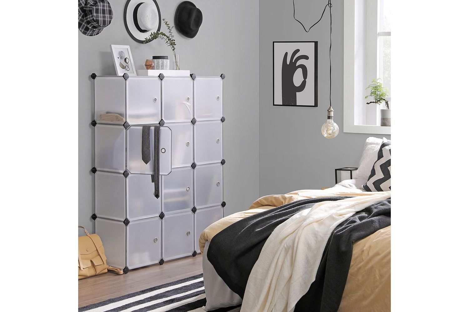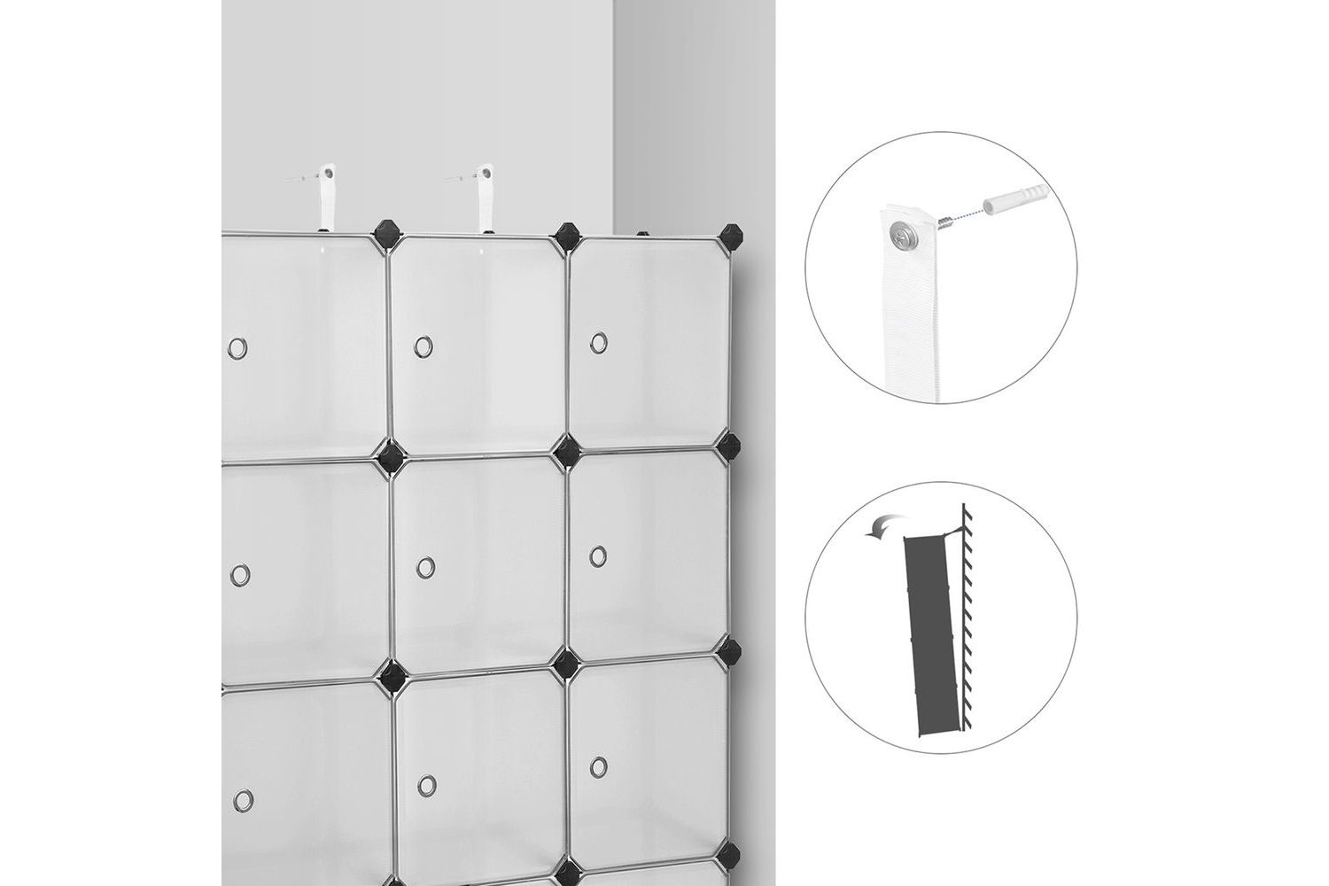 Constructed of sturdy metal wire frames, PP plastic panels and high-quality ABS plastic connectors, this cabinet has a high load capacity. Each cube can hold up to 10kg of clothing or shoes. In addition, the anti-tipper ensures additional stability and safe use.