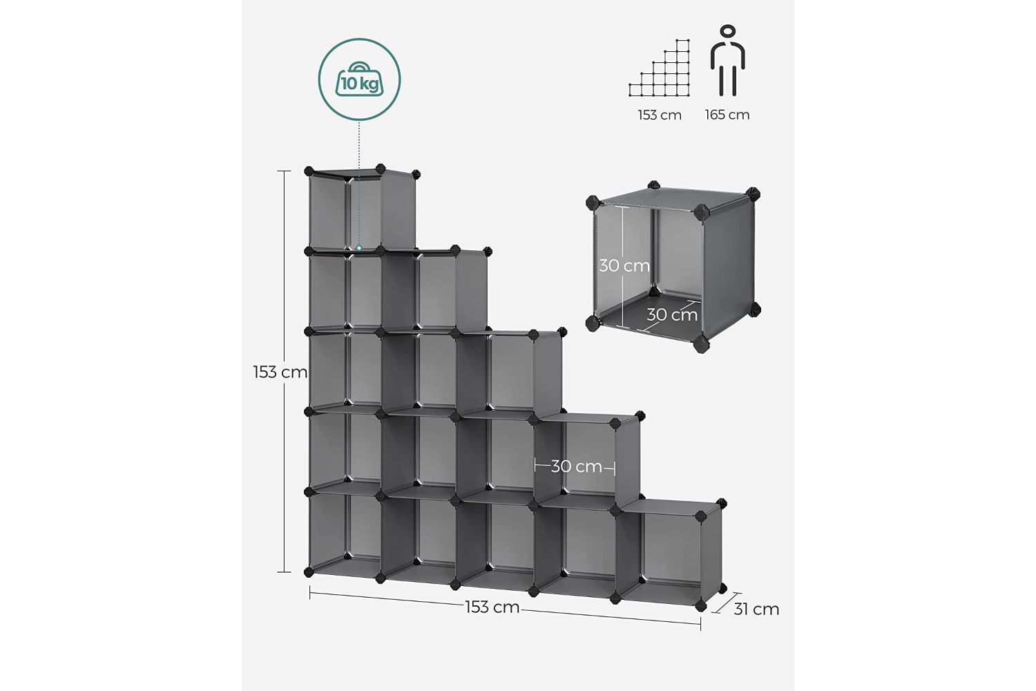 - Static load capacity per cube: 10 kg