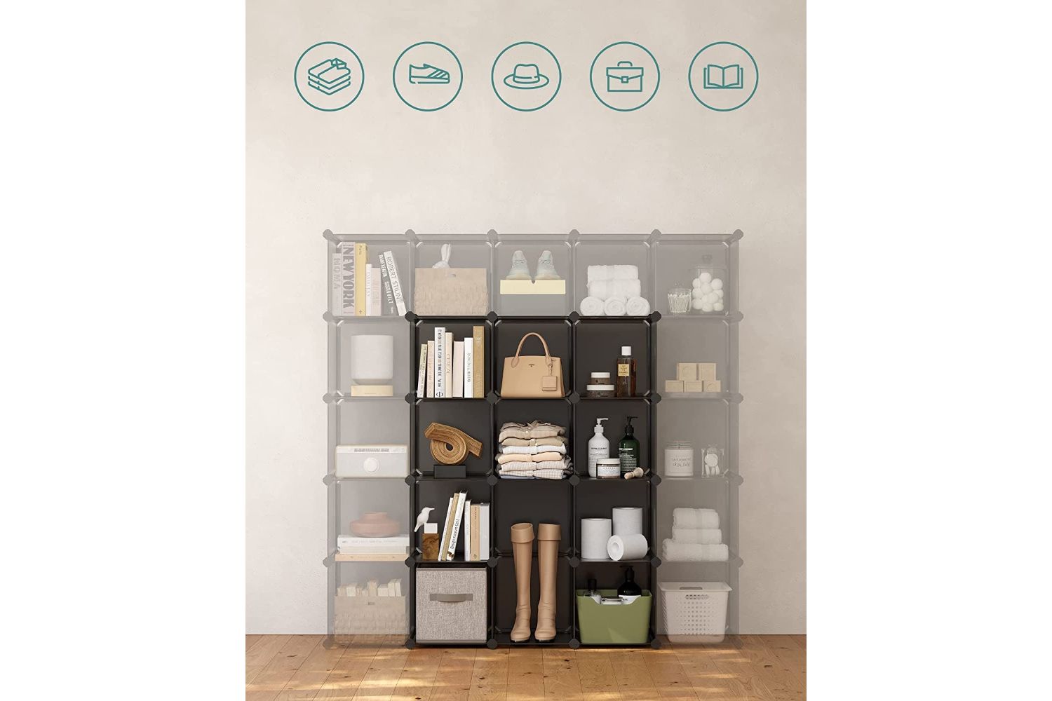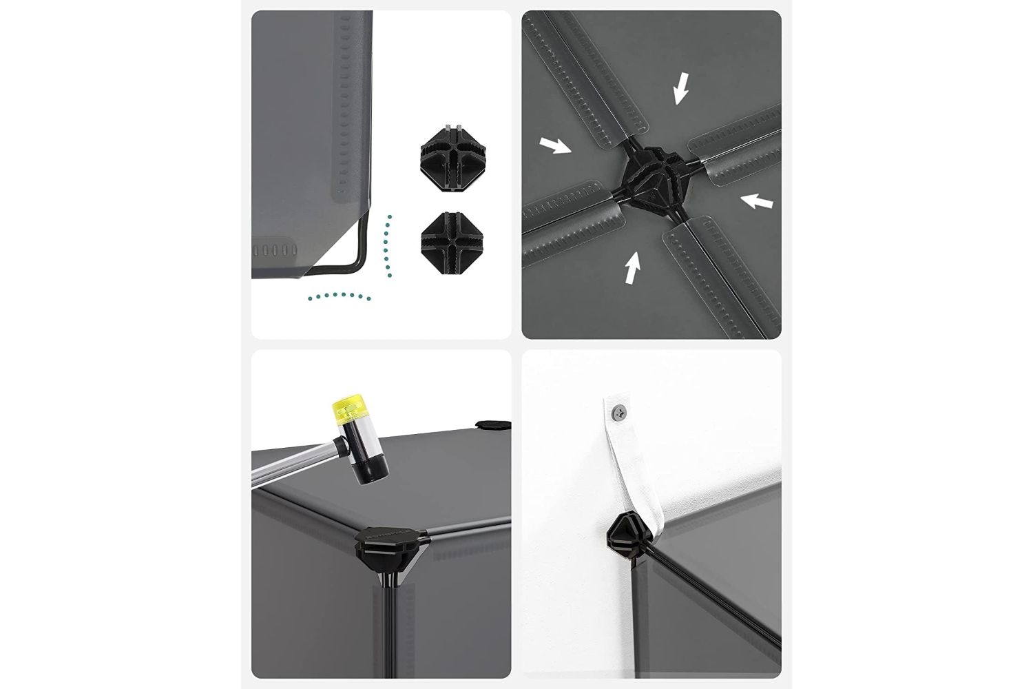 All Songmics plastic shelving systems are equipped with anti-tilt straps so you can attach them to the wall, which ensures more safety during use.