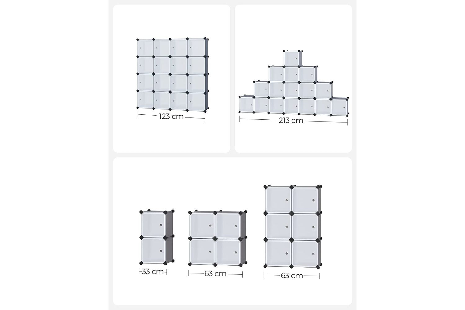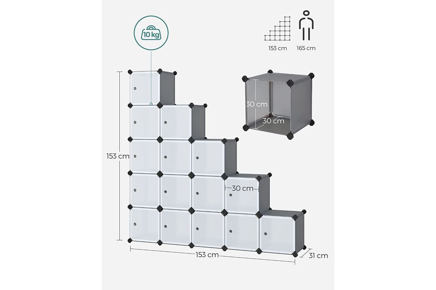 - Static load capacity per cube: 10 kg