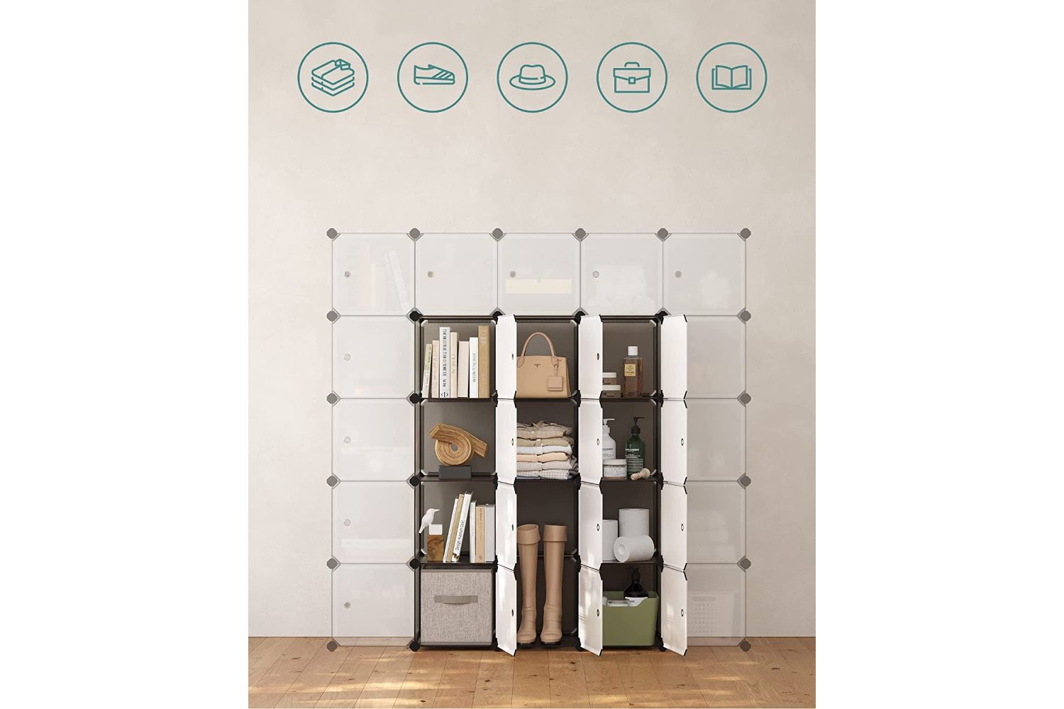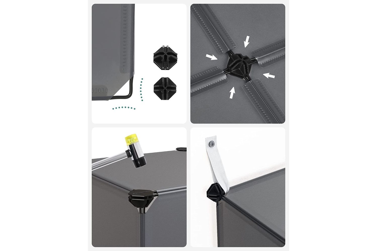 All Songmics plastic shelving systems are equipped with anti-tilt straps so you can attach them to the wall, which ensures more safety during use.