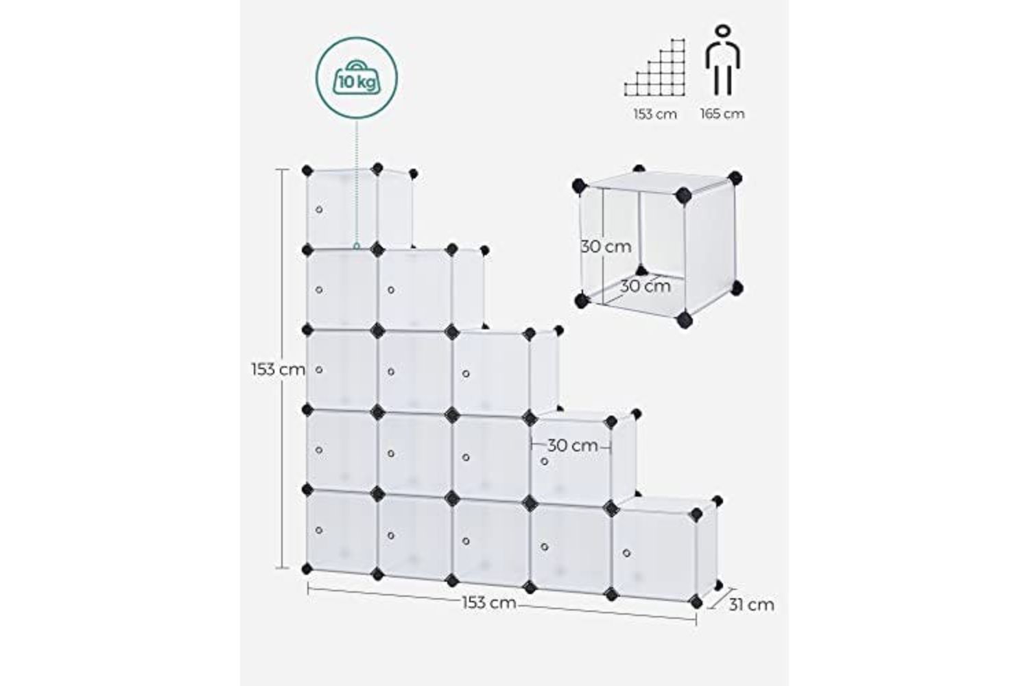 - Max. load per cube: 10 kg