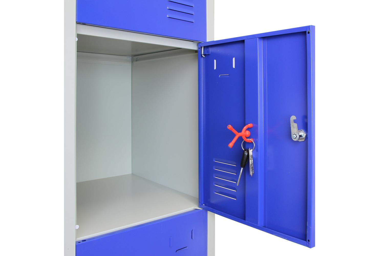 Featuring eye-catching blue doors contrasting a sleek grey frame, these units aren't just functional, they contribute a unique aesthetic appeal to your space. Each locker measures a generous 180cm high x 45cm deep x 38cm wide, providing ample space for secure storage. Tailored with an inclusive cam lock mechanism, safety is at the heart of every unit, with each door carrying two individual keys for authorised access.