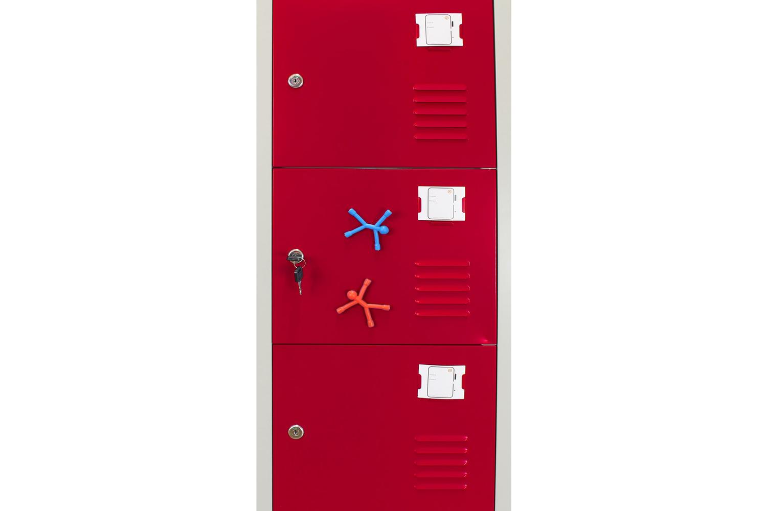 Unparalleled in security, each locker includes a cam lock mechanism, bolstered by two keys for each door. Rest assured that safety has been meticulously taken care of in the MONSTERSHOP Locker. In addition, every compartment features a name/number cardholder on the front of each door facilitating easy identification. The package includes two free magnets and name cards to personalise your lockers.