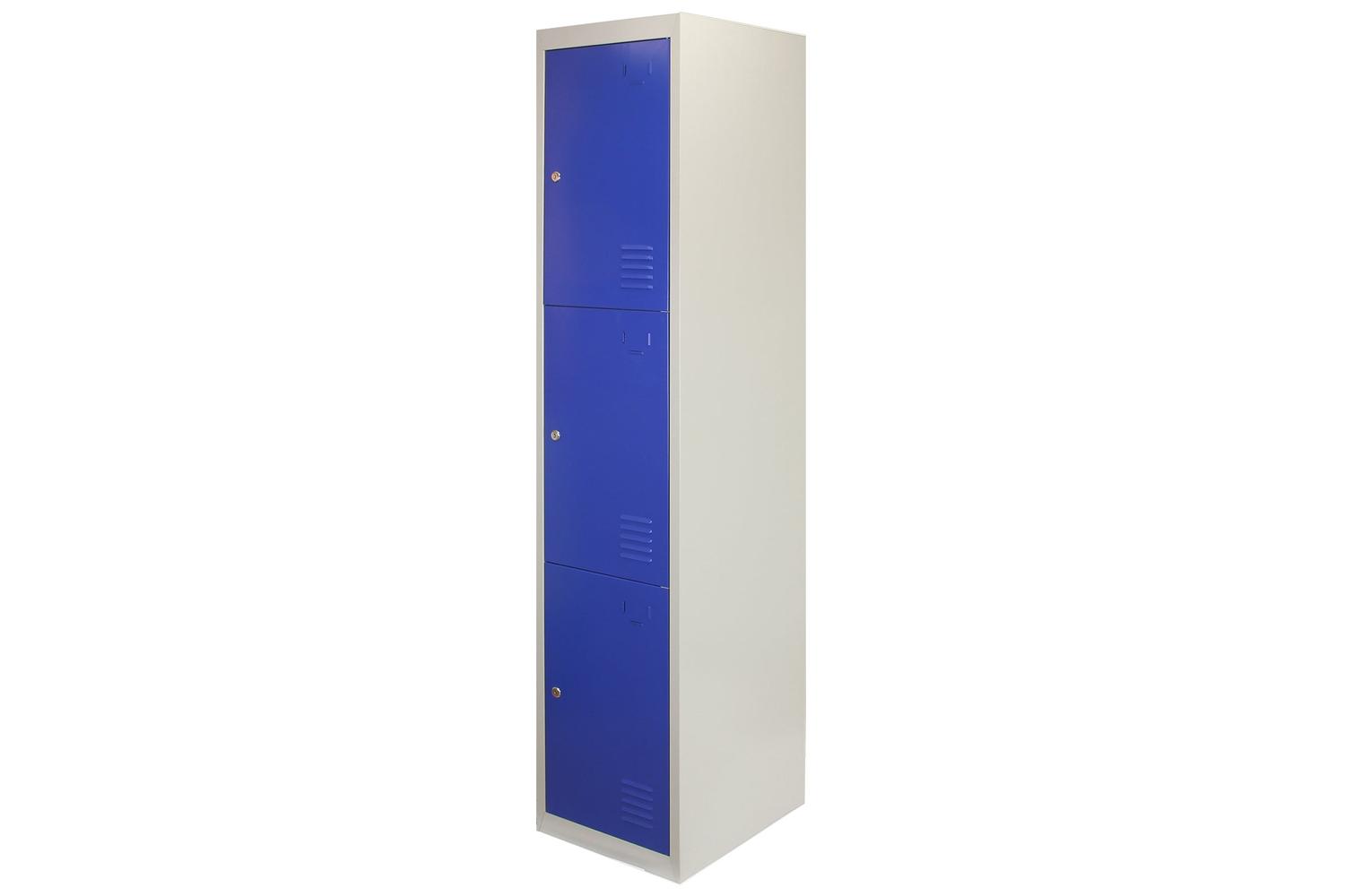 These locker cabinets can comfortably store clothes, stationary, personal belongings and more making use of their smartly designed internal shelf. With three independent lockers in one unit, each person is guaranteed secure storage allotment. Whether used on their own, or as part of a locker room layout by purchasing and combining multiple units, these are the optimal choice for creating personalised, space-efficient gym, and office changing room lockers.