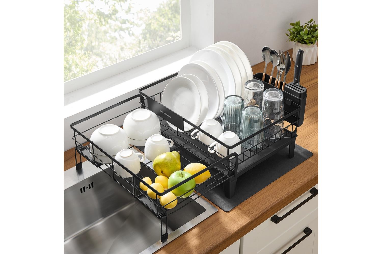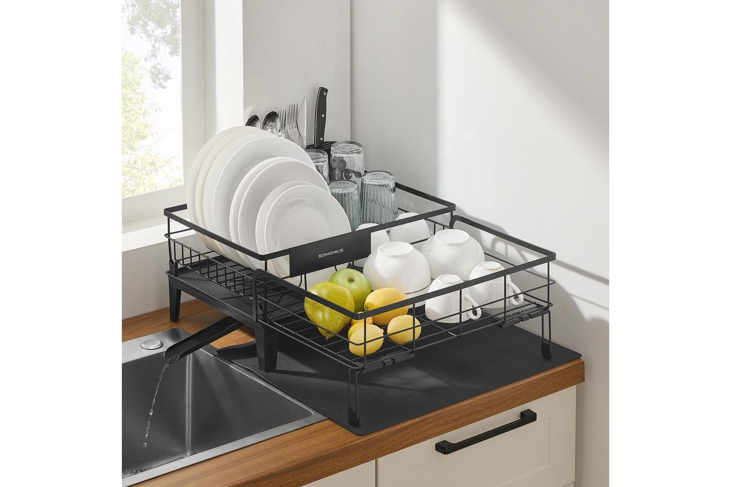 Built to last, the SONGMICS Dish Rack is crafted from premium steel with a powder coated finish, making it rust-resistant and durable. Its modern ink black colour adds a touch of sophistication to any kitchen décor, while the robust construction ensures it stands up to daily use without warping or losing its shine.
