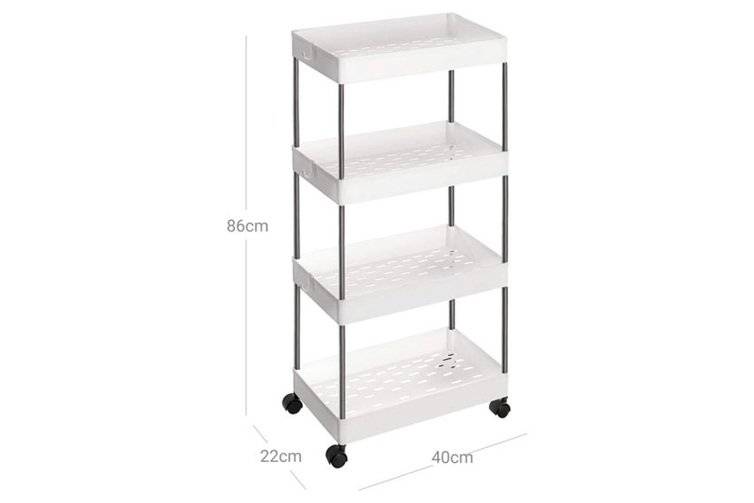 Is your home always in total chaos? Then you should try this 40 x 22 x 86 cm trolley. Equipped with 4 tiers of shelves, it helps you organize all your bathroom products, kitchen essentials or office documents in an orderly manner.