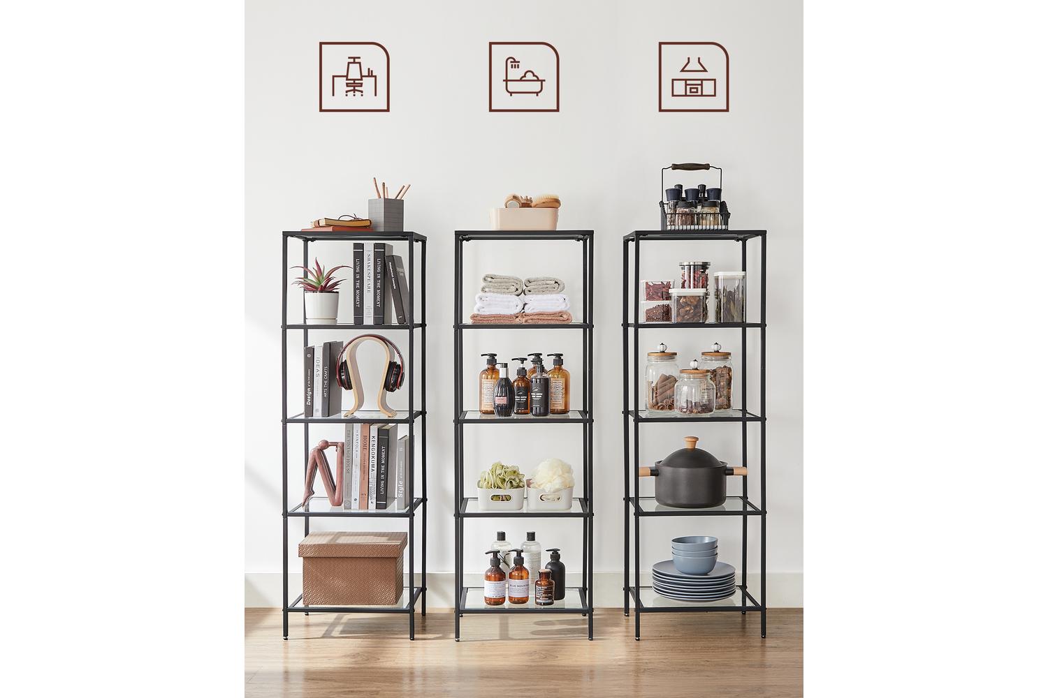 Transform your home with the VASAGLE Storage Rack, a sleek 5-tier shelving unit designed to bring modern minimalism and practical storage to any Irish home. Crafted with transparent tempered glass shelves and a striking ink black steel frame, this storage rack is the perfect solution for those seeking both style and functionality. Whether you are looking to display your favourite plants, treasured books, or cherished collectibles, this shelving unit elevates your space while keeping everything beautifully organised.