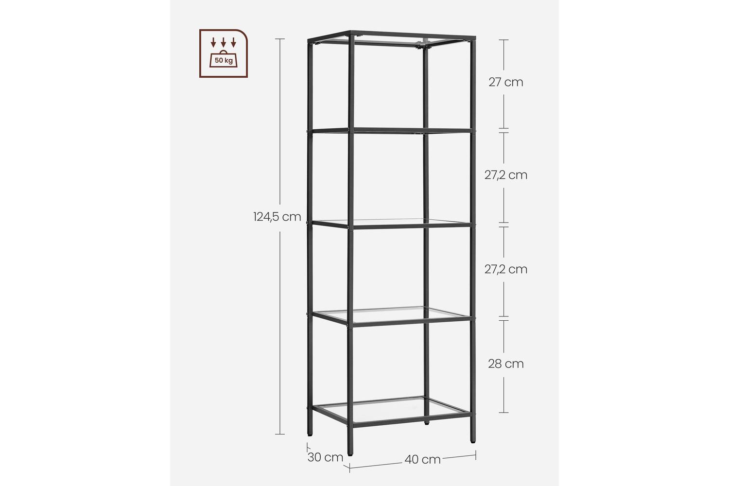 Make the most of your living area with this compact yet spacious shelving unit. Measuring just 30 x 40 cm on the floor and standing 124.5 cm tall, the VASAGLE Storage Rack is ideal for apartments, kitchens, offices, or any room where space is at a premium. Its five sturdy shelves allow you to store and showcase a variety of items, from office documents to bathroom toiletries, all while keeping your home clutter-free and stylish.