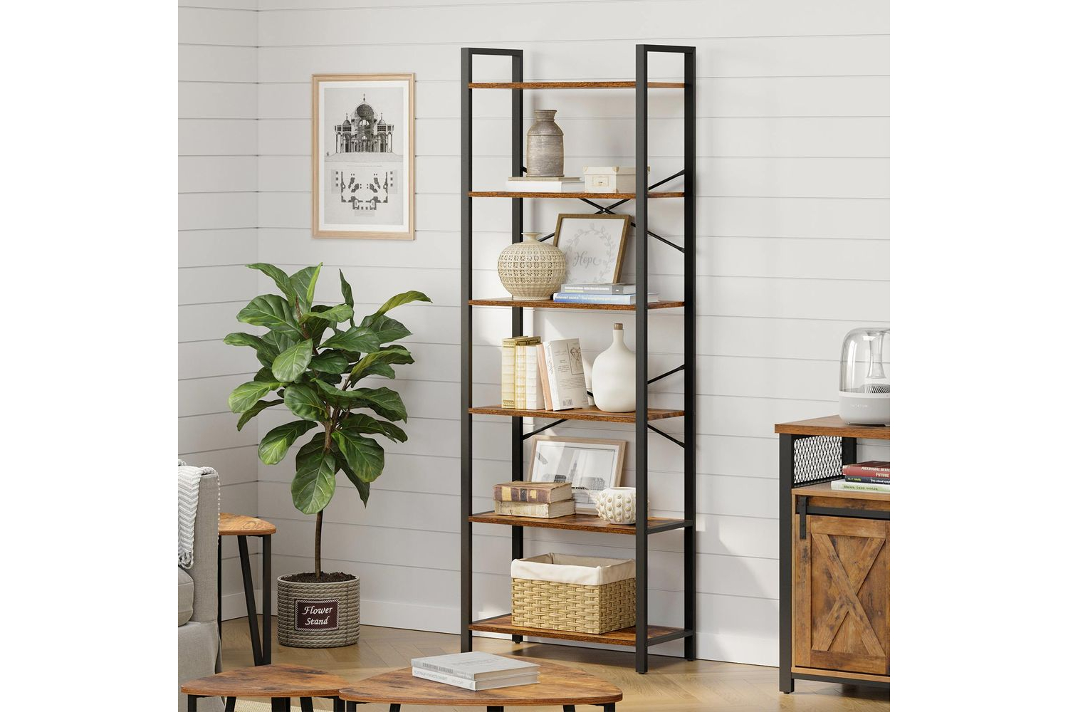6 Shelves Everywhere: With 6 open rustic brown shelves, this bookshelf can display your favourite books, decorations, and plants in the living room, bedroom, bathroom, or hallway; you just need to decide which room to place it inBuilt-to-Last: A smart mix of quality particleboard and a sturdy steel frame ensures that this shelving unit will last as long as the family heirlooms you decorate it with. Each shelf supports up to 10 kgAssembly Is a No Brainer: With clear instructions and labelled parts for easier understanding, youll spend less time assembling this bookshelf than deciding which book to start reading!Stability Matters: Decorations shattered because your cat jumps on top and the rack tilts over? Relax. It wont happen to this 6-tier shelf, as the included anti-tip kit will help you fix it to the wall for greater stabilityWhat You Get: A 6-tier storage rack measuring 66 x 30 x 186 cm from the ALINRU Collection, an industrial storage solution and a great way to elevate your furnishing to the next levelSpecifications: - Colour: Rustic Brown, Black - Material: Particleboard, Steel - Product Size: 66 x 30 x 186 cm (L x W x H) - Product Weight: 16.5 kg - Max. Static Load of Each Tier: 10 kg - Max. Overall Static Load Capacity: 60 kg Package Contents:- 1 x Storage Rack- 1 x Assembly Kit- 1 x Anti-Tip Kit- 1 x Instructions (EN, DE, FR, ES, IT)