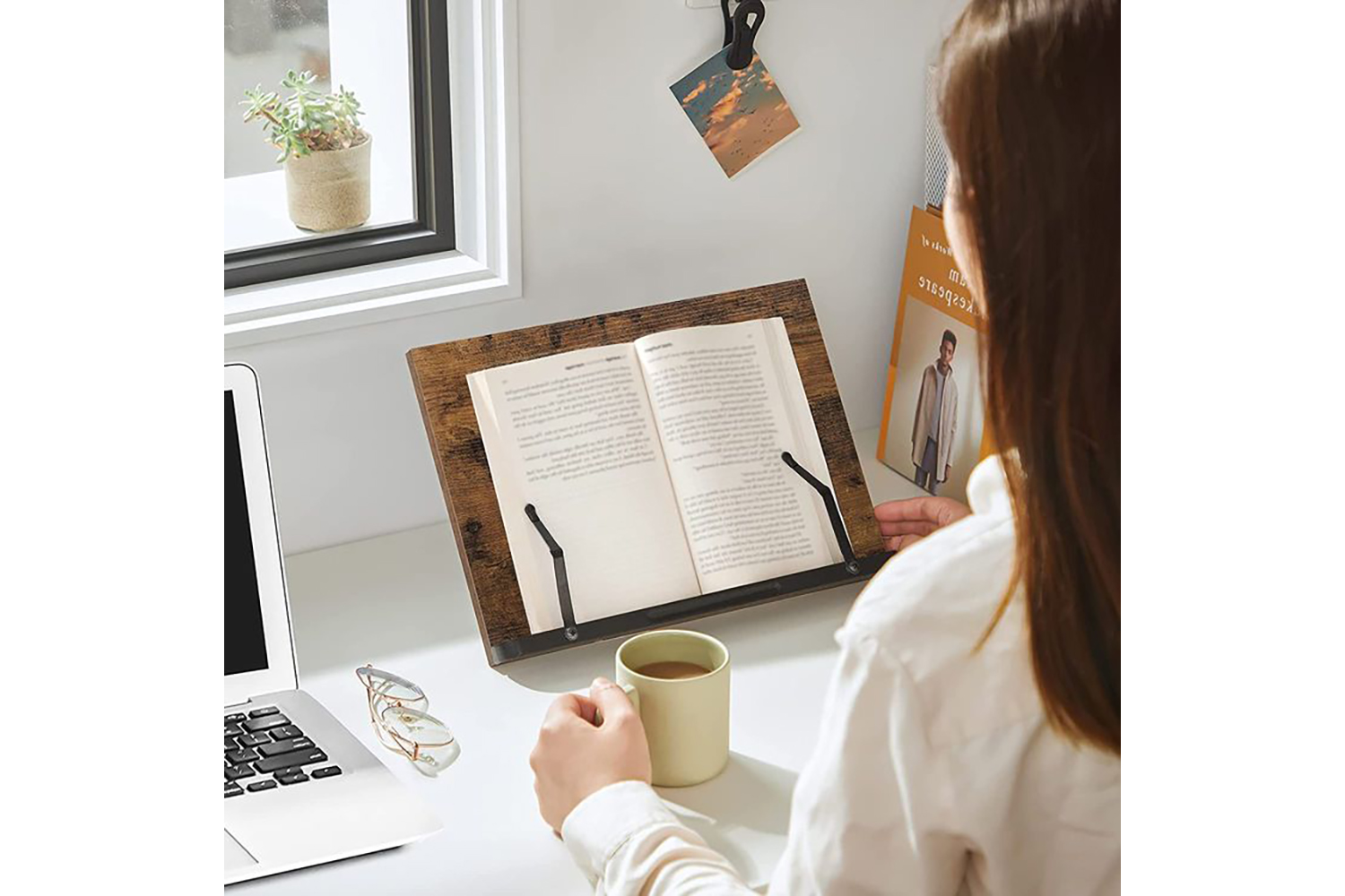 Boasting 5 adjustable angles, you can always find the right angle for a comfortable, healthy reading posture. After reading, easily fold it up for storage—it takes little space on your desk!