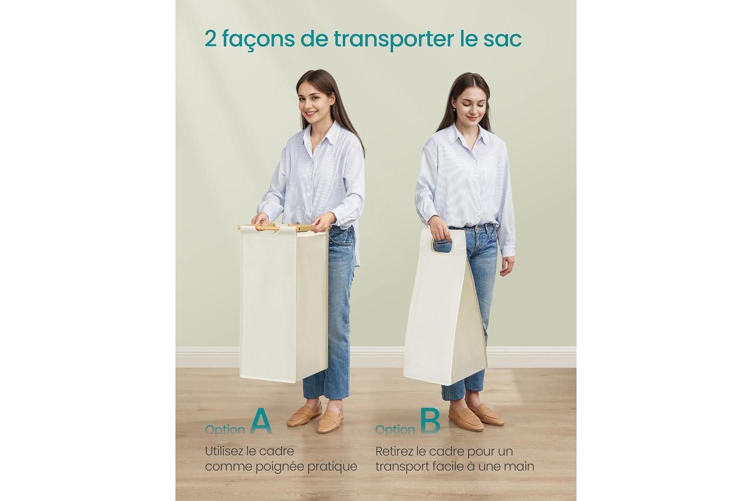 Effortless sorting is at your fingertips thanks to the dual-compartment design. Separate your colours from your whites or organise by fabric type, ensuring your clothes are always cared for properly. The removable laundry bags, secured with sturdy Velcro closures, make transporting your washing to the machine quick and easy. No more juggling armfuls of clothes—simply lift out the bag and go.