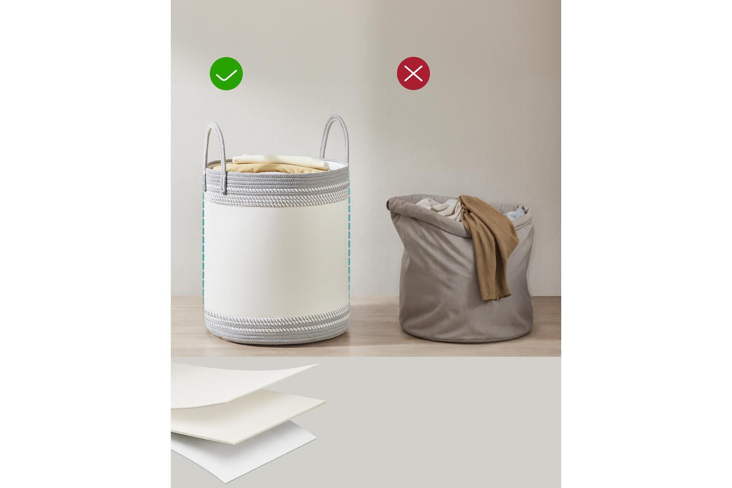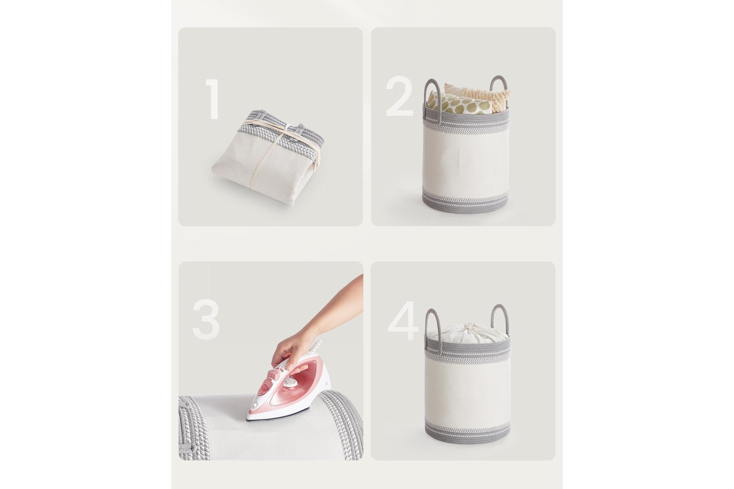 If your basket arrives with a few wrinkles, simply fill it with clothes or blankets to help it regain its shape. For a flawless finish, smooth out any creases with an iron, and your basket will look as good as new.