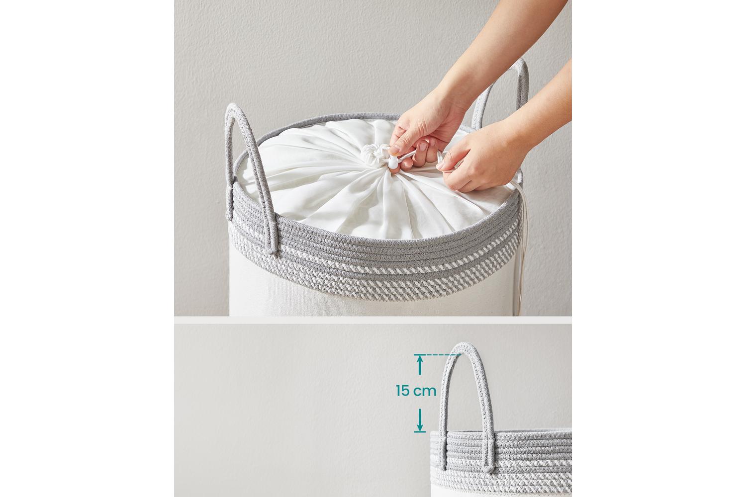 Crafted from premium 2.5mm thick fabric and reinforced with durable cotton ropes, the SONGMICS Laundry Basket stands upright even when empty, ensuring long-lasting stability. The breathable materials keep your clothes fresh, while the secure drawstring closure at the top protects your laundry from dust and prying eyes. No more worrying about clothes spilling out or losing privacy—this basket has you covered.
