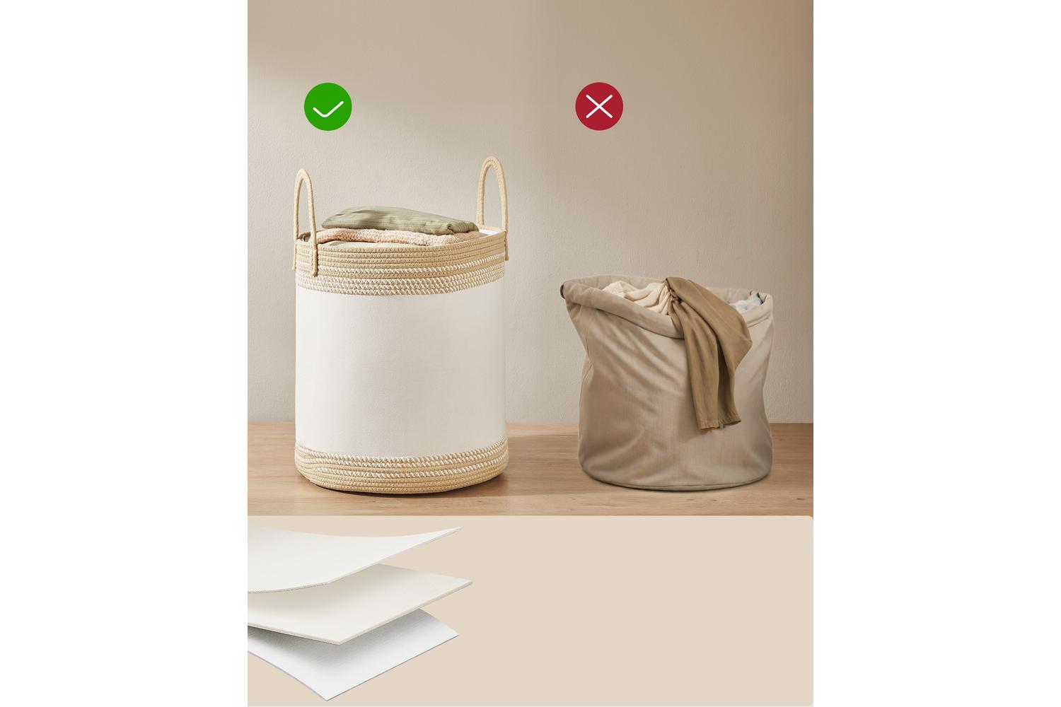 Designed to complement any interior, the SONGMICS Laundry Basket features a stylish blend of colours and materials. Its modern look fits seamlessly into contemporary, traditional, or minimalist homes, adding a touch of elegance to your storage solutions. If creases appear after unpacking, simply fill the basket with clothes or blankets and iron out the wrinkles to restore its original shape.