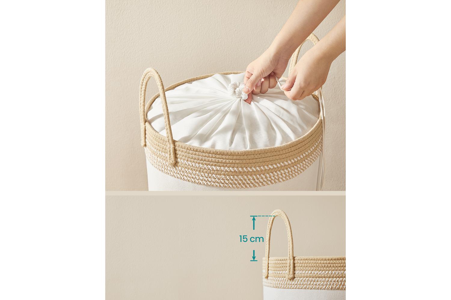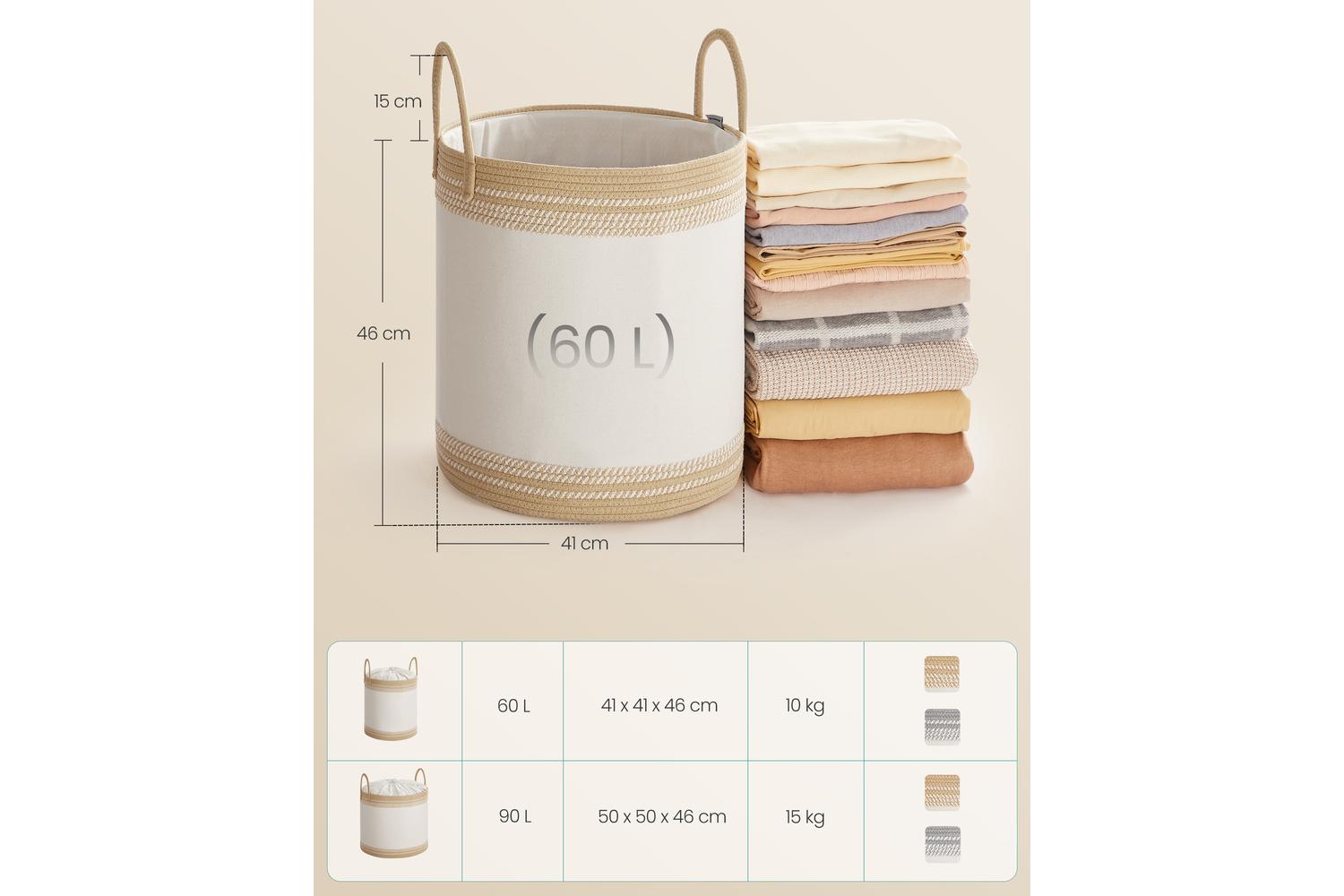 Transform your laundry routine with the SONGMICS Laundry Basket, designed for Irish homes that value both practicality and style. This free-standing laundry hamper is crafted from thickened 2.5mm fabric and sturdy cotton ropes, ensuring it remains stable and upright even when empty. The breathable material keeps your clothes fresh, while the robust construction guarantees long-lasting use, making it an essential addition to any bedroom, bathroom, or utility room.
