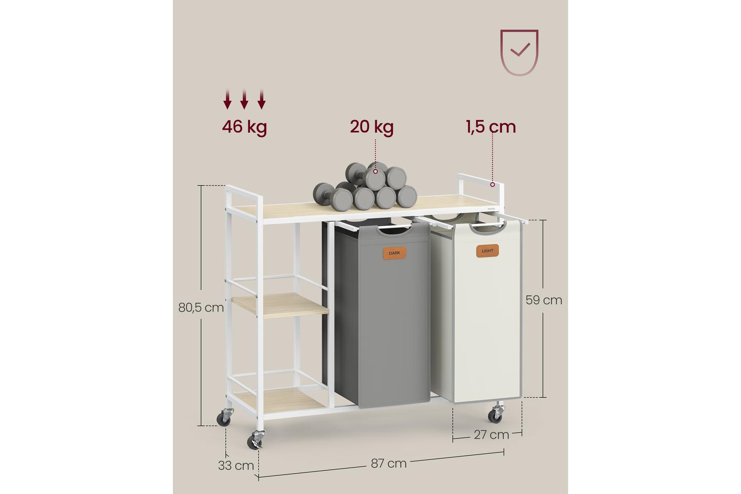Transform your laundry routine with the VASAGLE Laundry Basket, expertly designed for Irish homes seeking both style and practicality. This large-capacity laundry cart is the perfect solution for busy households, offering a generous 100L of space with two removable 50L bags. Whether you are sorting clothes for a family or managing laundry in a shared space, this laundry organiser makes the process effortless and efficient.
