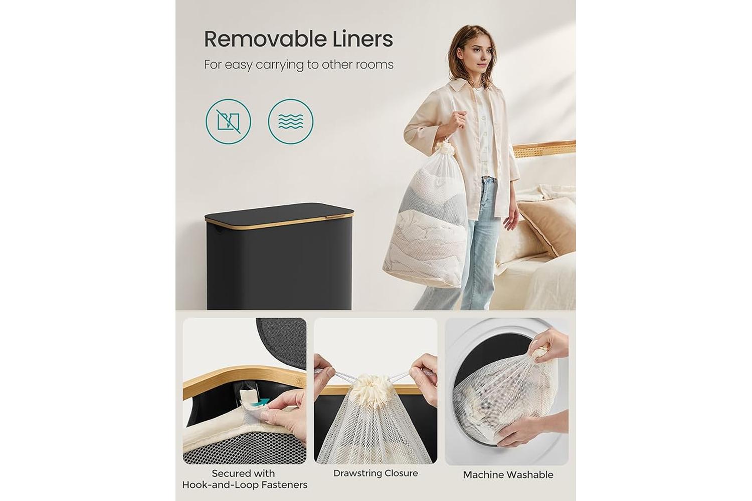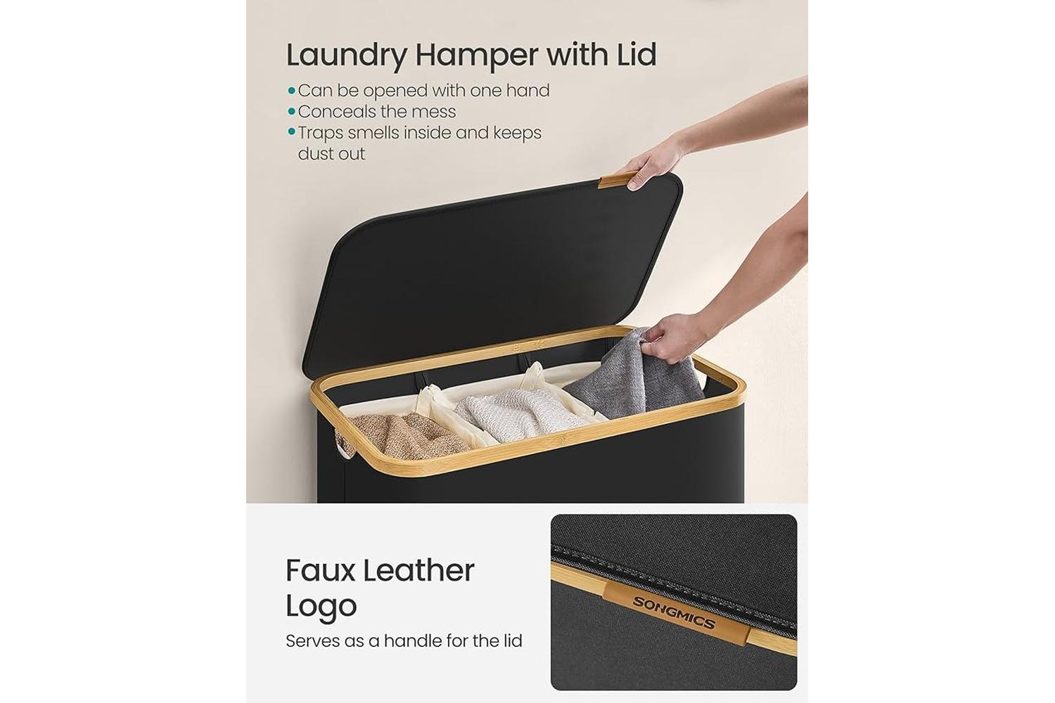 Transform your laundry routine with the SONGMICS Laundry Hamper, the perfect solution for stylish and practical storage in any Irish home. Designed for busy households, this laundry basket combines modern aesthetics with robust functionality, making it an essential addition to bedrooms, bathrooms, or utility rooms. Its sleek ink black finish and natural bamboo accents blend seamlessly with contemporary and traditional interiors alike, ensuring your space stays tidy and clutter-free.