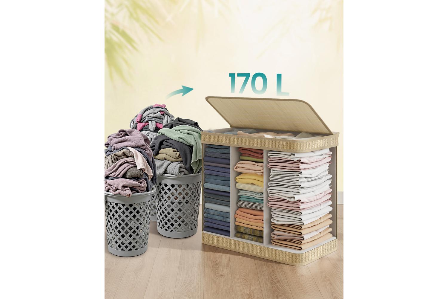 Transform your laundry routine with the SONGMICS Laundry Hamper, designed to bring order and style to your home. Perfect for busy Irish households, this spacious 170-litre laundry basket features three separate compartments, making it easy to sort your clothes by colour – darks, lights, and colours – right from the start. No more last-minute sorting or mixing up your favourite jumpers and jeans. With its generous size of 67 x 44 x 61 cm, this hamper comfortably holds a week's worth of laundry for up to three people, making it ideal for families, couples, or shared living spaces.