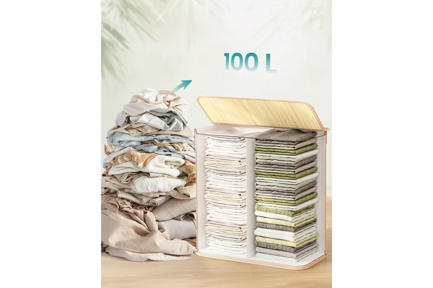 Transform your laundry routine with the SONGMICS Laundry Hamper, designed for busy Irish households seeking both style and practicality. This spacious bamboo laundry basket is the perfect solution for keeping your home tidy, fresh, and clutter-free. With a generous 100 litre capacity, it easily holds a week's worth of clothes, towels, and bedding for the whole family, making laundry day a breeze.
